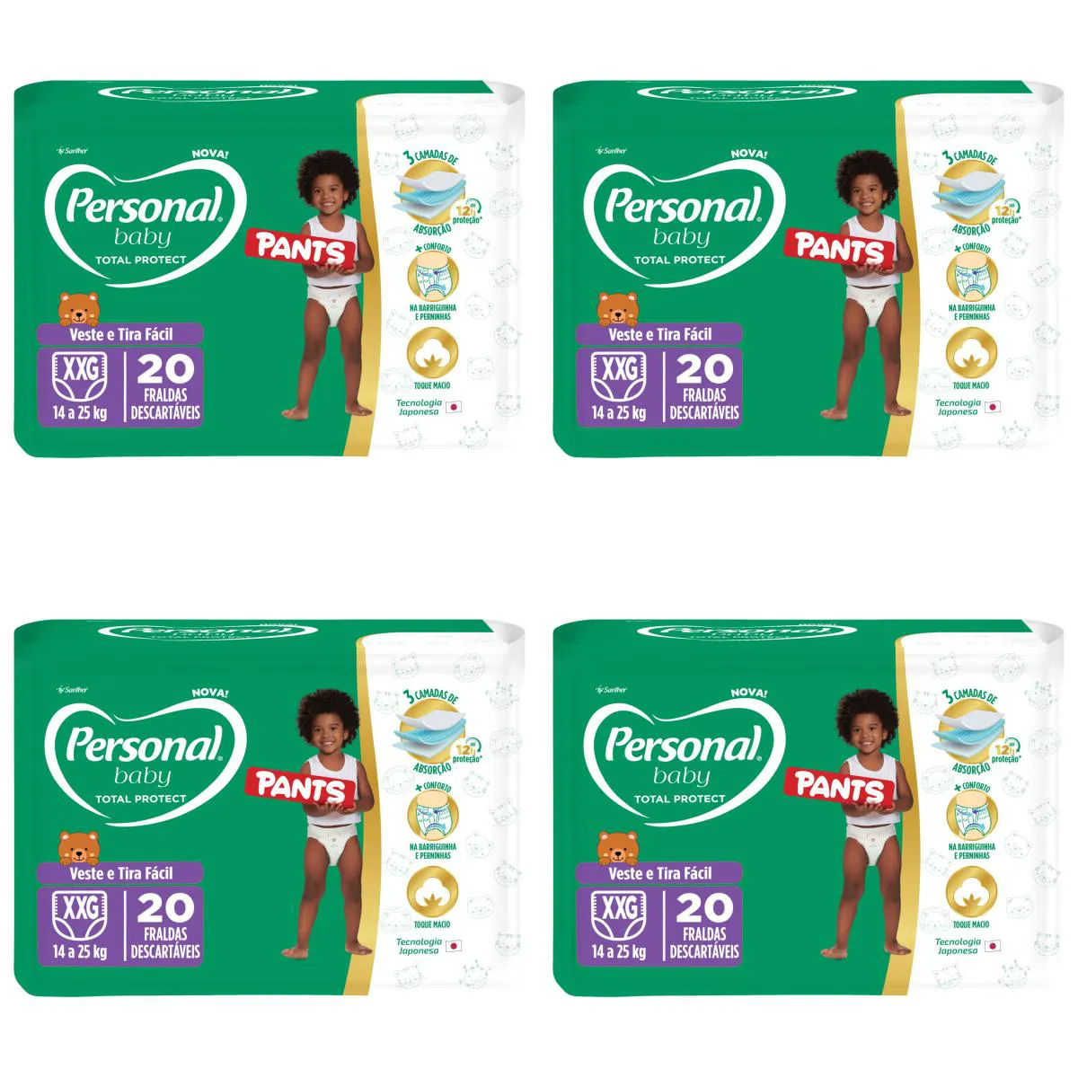 Kit 4 Fraldas Personal Baby Total Protect Pants Xxg 20 Unidades Cada