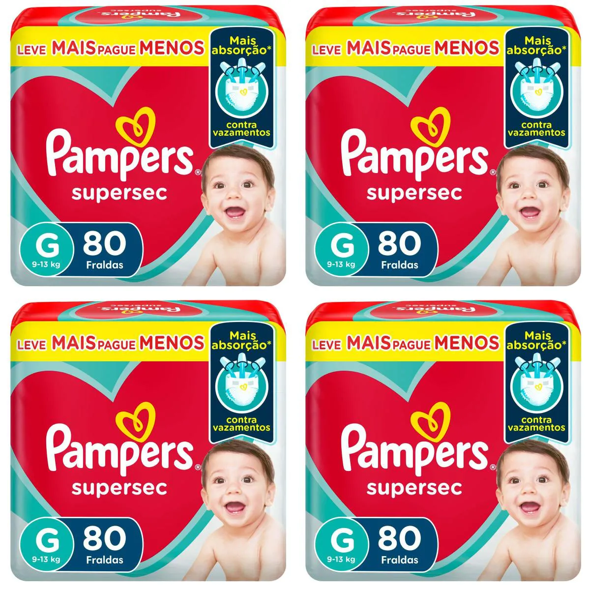 Kit 4 fraldas Supersec Jumbo ”G” Pampers Simples c/ 80 Unidades cada.