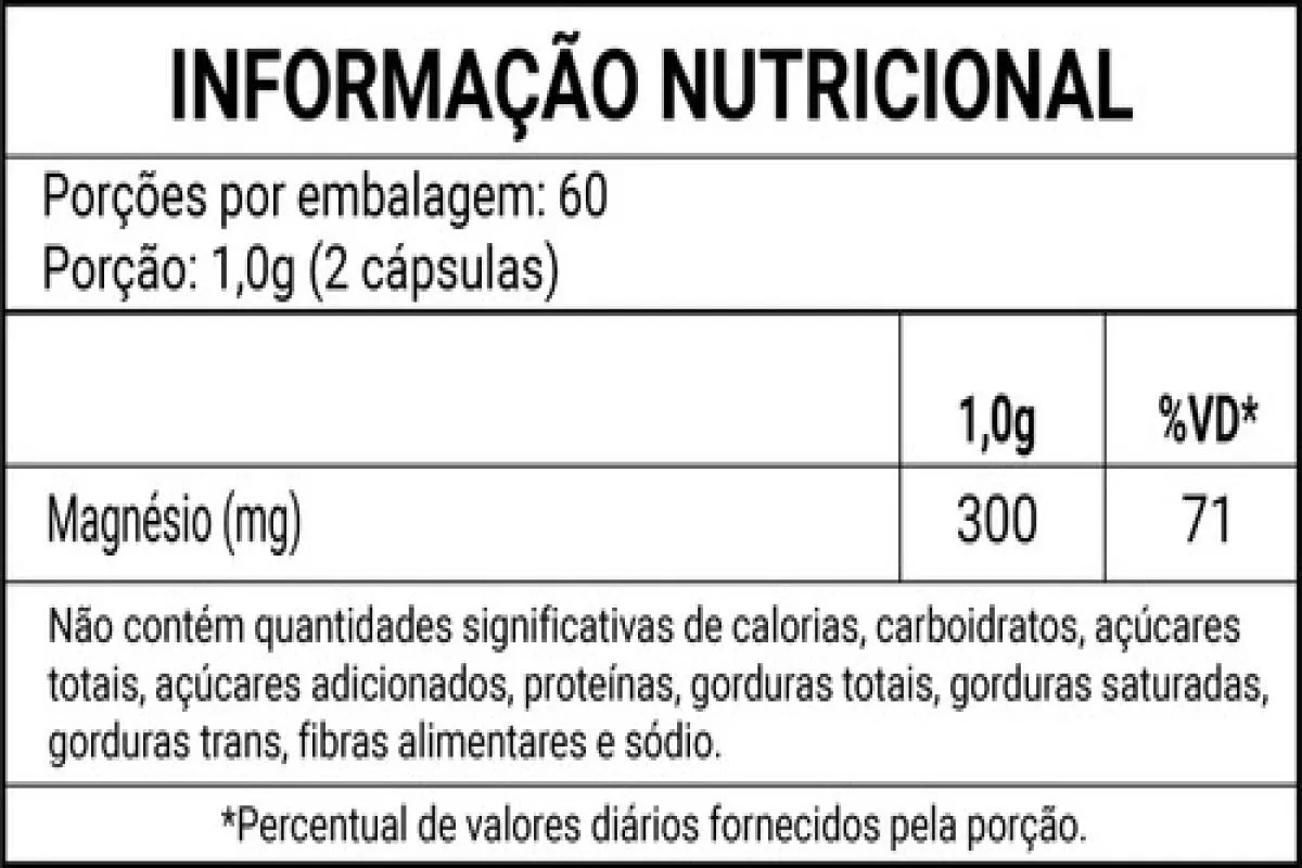 Em cada apresentação de 120 cápsulas, o suplemento reúne magnésio quelato e silicato de magnésio, em cápsulas de gelatina com ingredientes como umectante glicerina e corante dióxido de titânio.