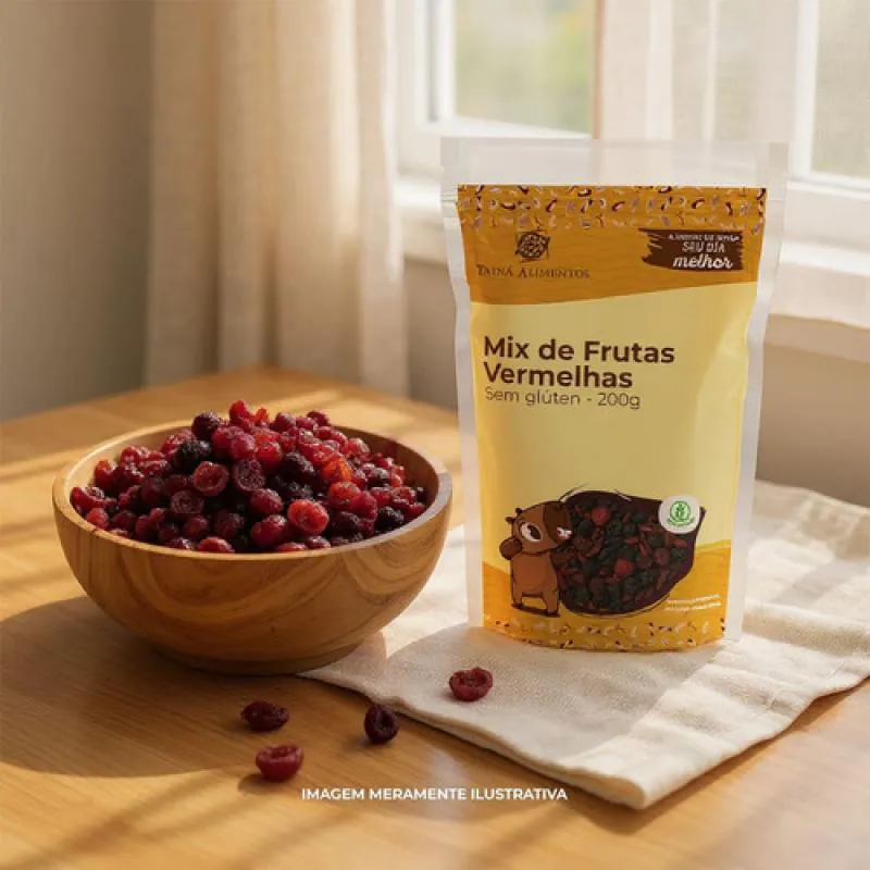 Mix de Frutas Vermelhas da Tainá Alimentos é uma combinação selecionada de frutas desidratadas que oferece sabor, praticidade e valor nutricional em uma embalagem de 200 g. Ideal para consumir como snack ou enriquecer receitas, traz um toque especial ao seu dia a dia.