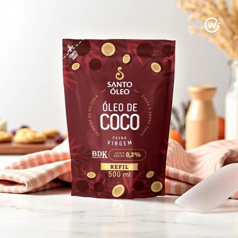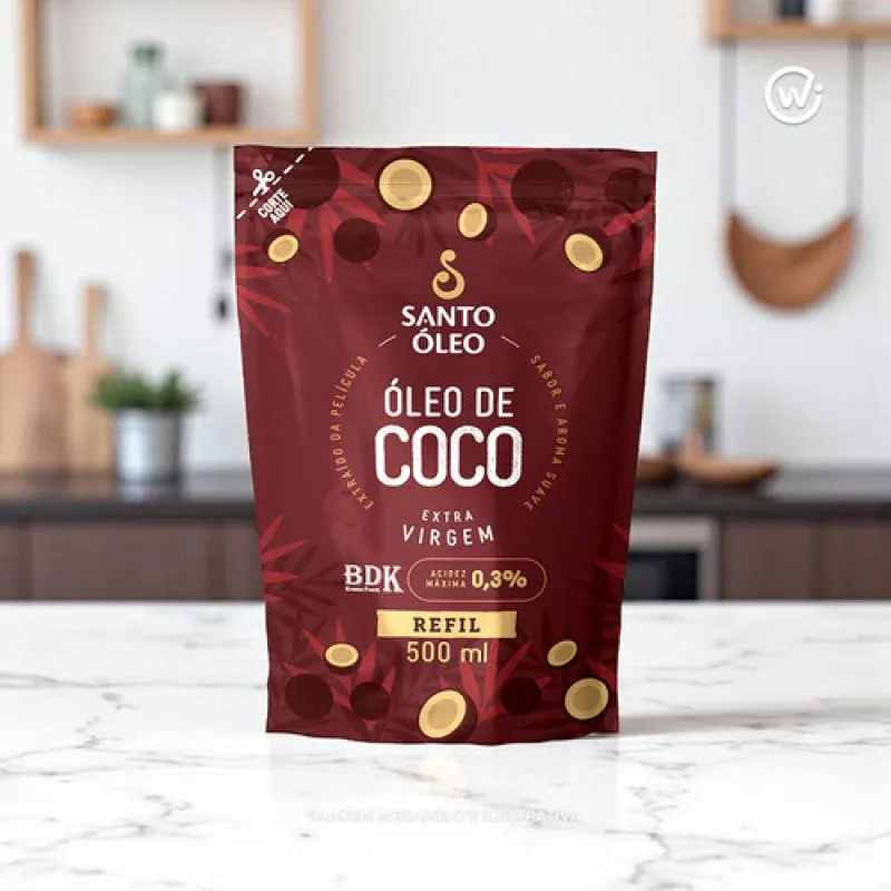 O Óleo de Coco Extravirgem de Película Refil 500 ml, da Santo Óleo, é obtido por prensagem a frio da película marrom que reveste o coco ao invés da polpa branca resultando em um óleo com sabor e aroma mais suaves. Sua acidez é baixíssima (até 0,3%) e possui alto teor de ácido oleico (ômega-9), oferecendo leveza e versatilidade para uso culinário e cosmético. Esta versão refill proporciona economia e menor impacto ambiental, mantendo todas as características originais do produto, porém em embalagem prática.