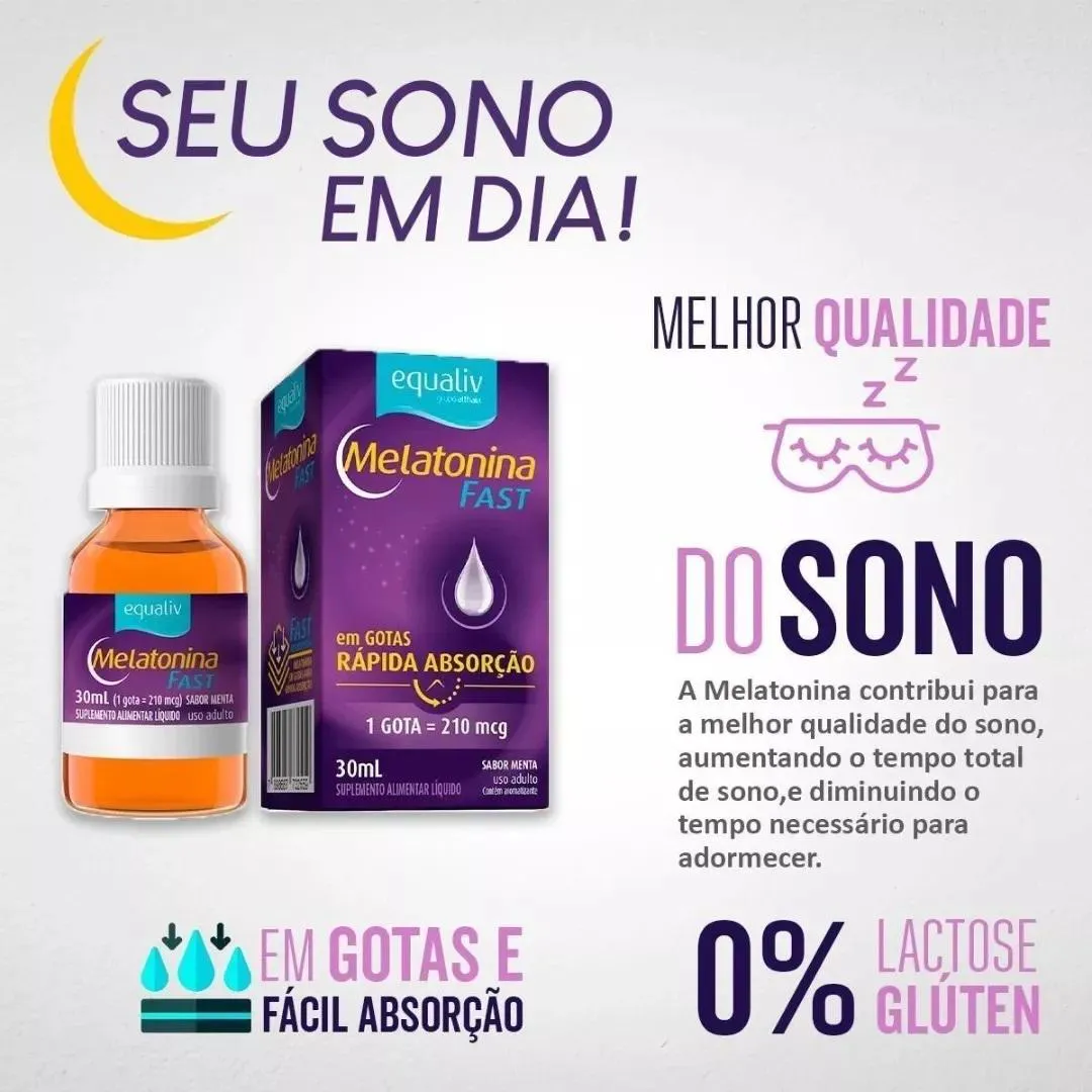 O Kit 4 Suplemento Equaliv Melatonina Fast é um suplemento alimentar composto por melatonina e triptofano, desenvolvido para complementar a nutrição e auxiliar no bem-estar geral do organismo. Trata-se de um suplemento líquido com rápida absorção e sabor de menta, sem adição de açúcares.