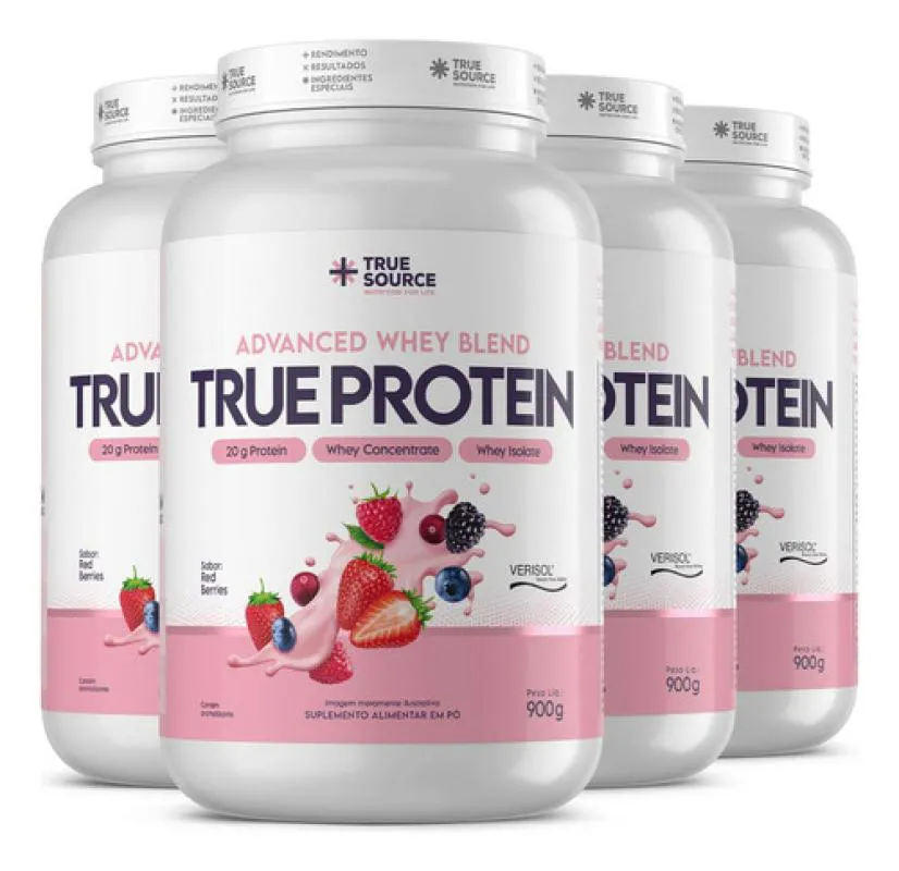 O True Whey Red Berries da True Source é um suplemento proteico em pó sabor frutas vermelhas (Red Berries), desenvolvido com um blend avançado que combina proteína de soro do leite concentrada, proteína isolada e colágeno hidrolisado (VERISOL®).