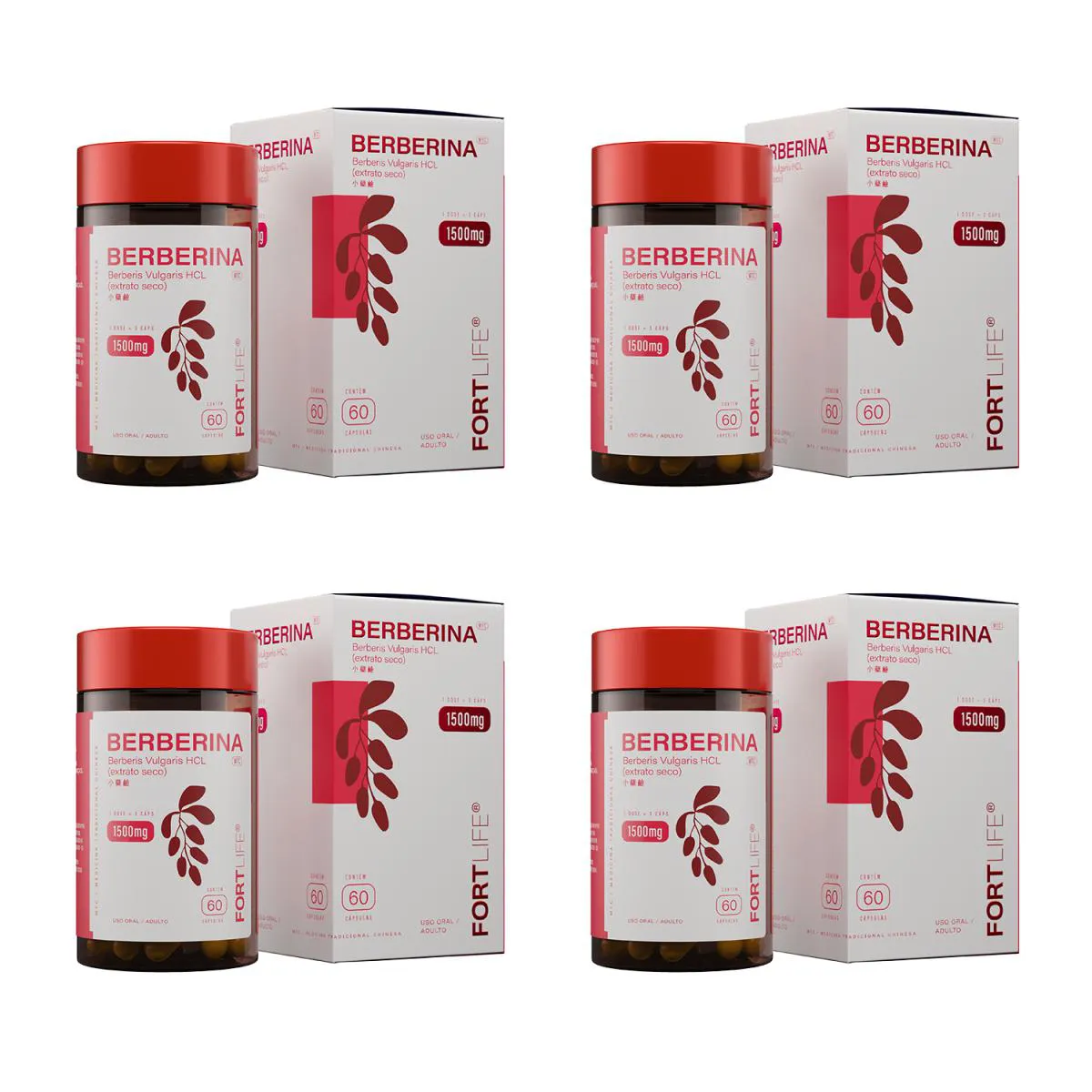 Kit 4 Und Berberina Hcl 1500Mg 60 Cápsulas Fortlife