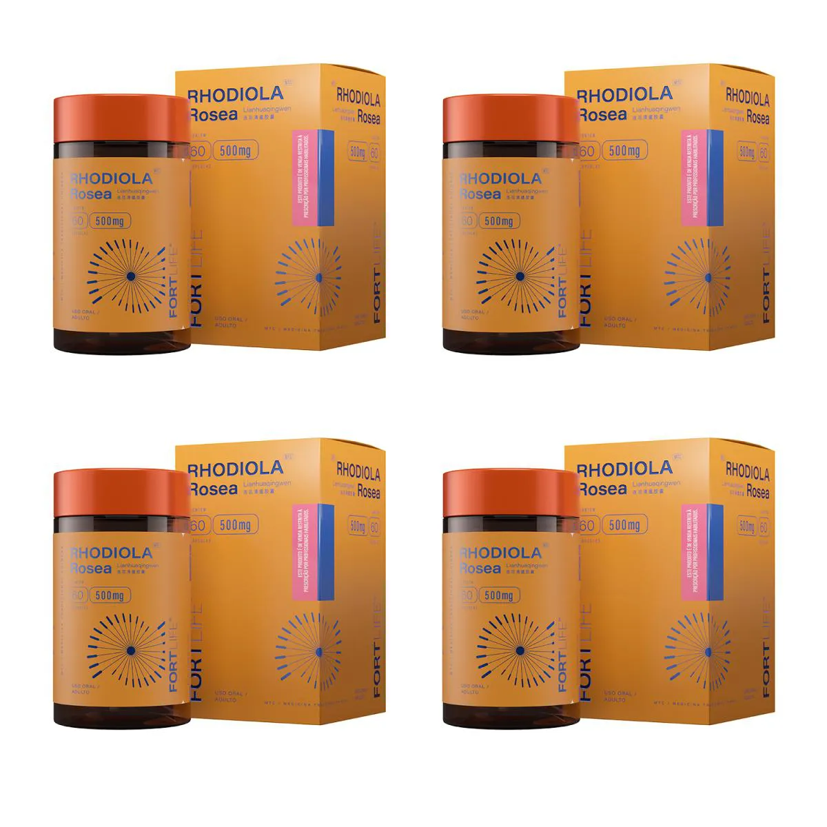 Kit 4 Und Rho Diola Rosea 500Mg 60 Cápsulas Fortlife