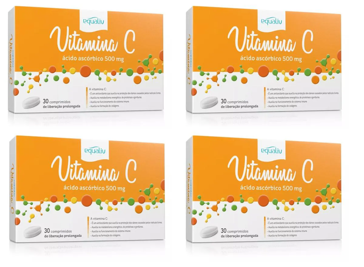 Kit 4 Vitamina C Equaliv 500Mg Imunidade com 30 Comprimidos