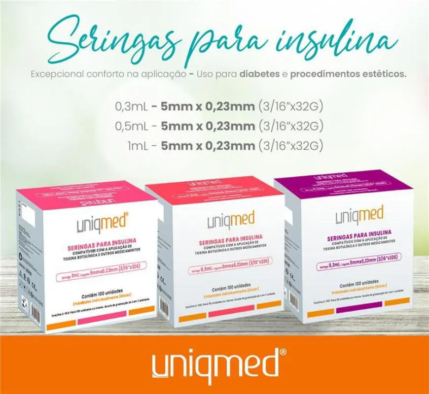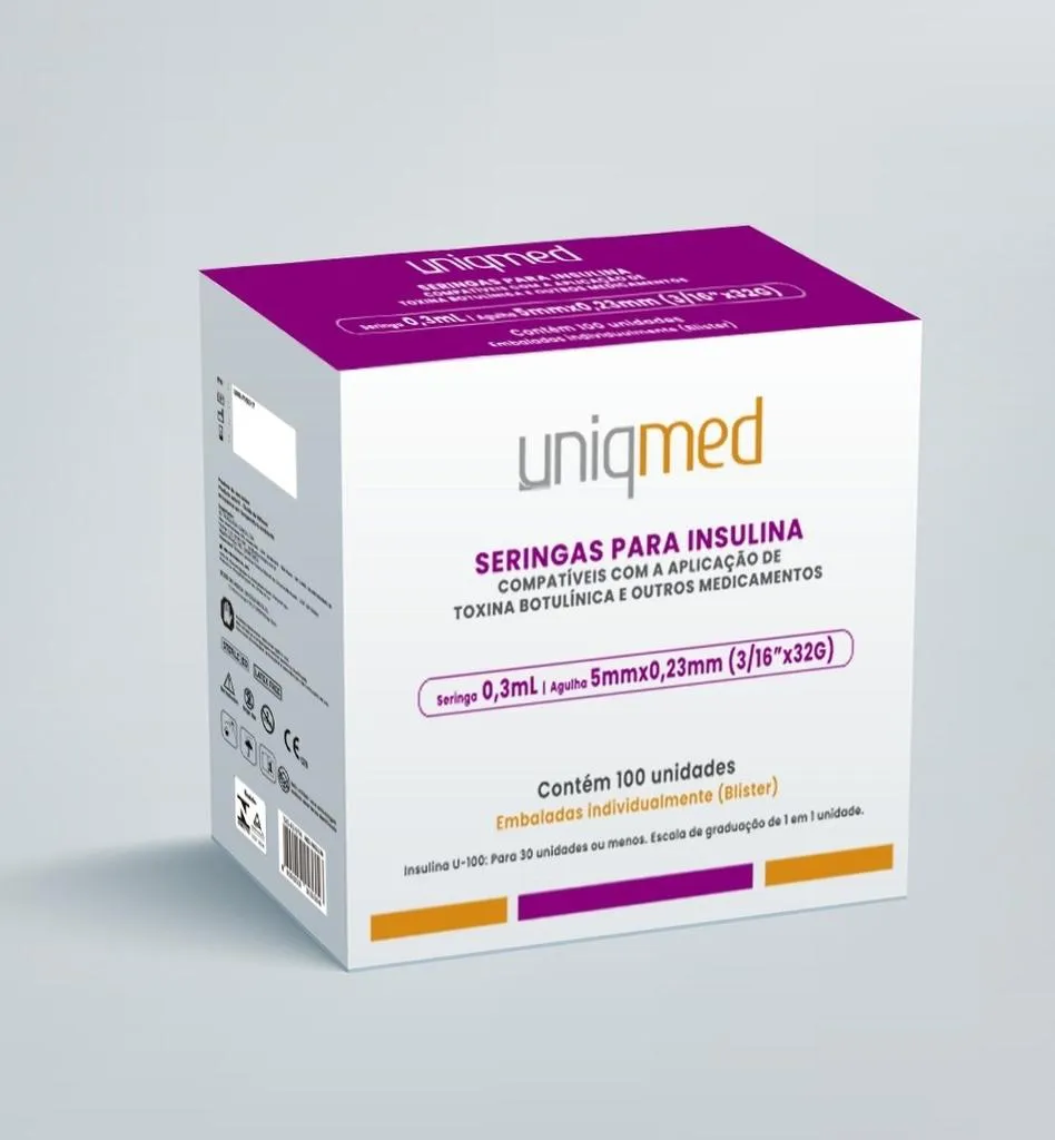 Kit 400Un Seringa para Toxina Uniqmed 0,3Ml 5X0,23 32G