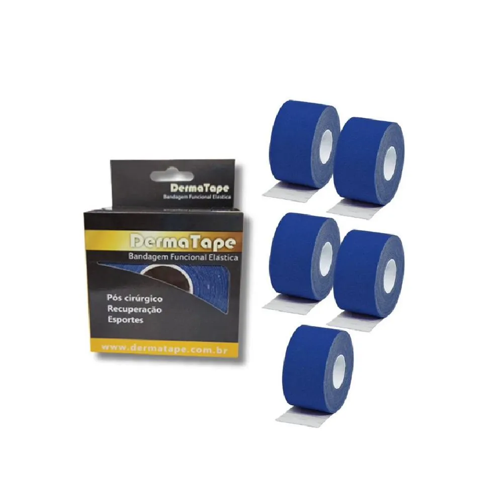 Kit 5 Bandagem Funcional Elástica Derma Tape Bioland Azul