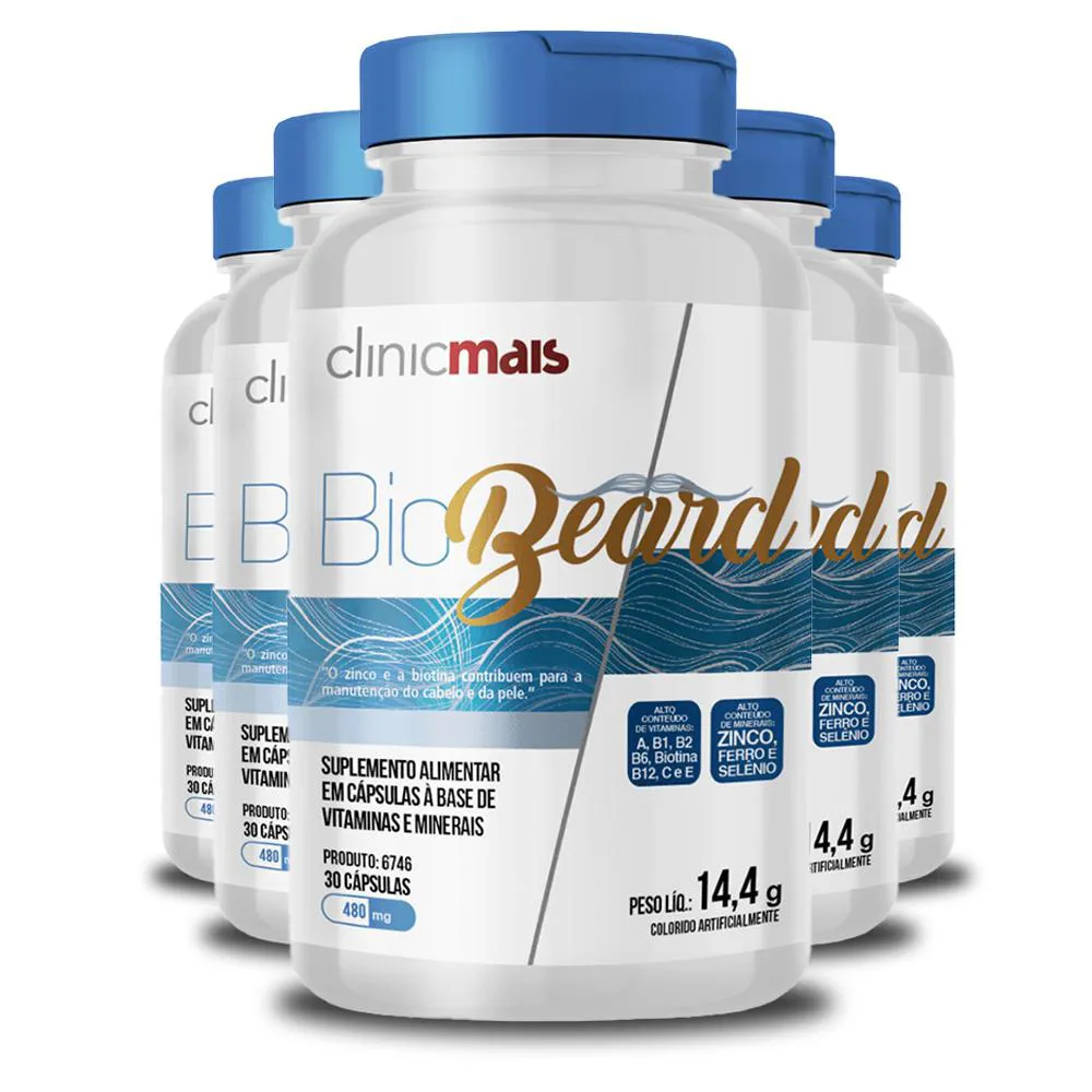 Kit 5 Biobeard Clinicmais 30 cápsulas 480mg