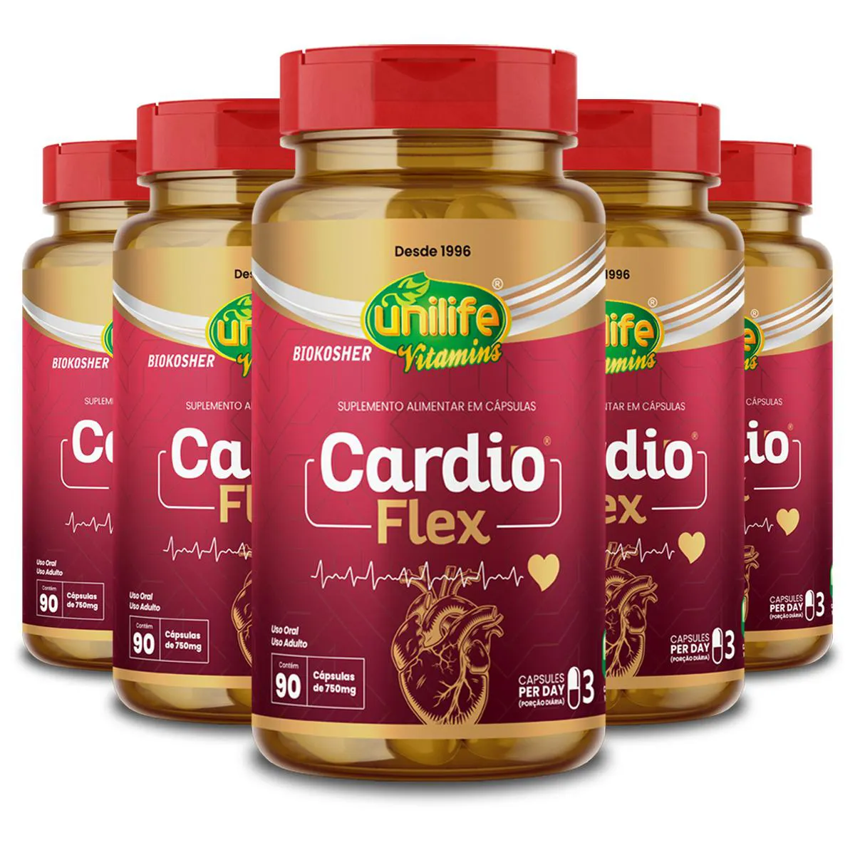 Kit 5 Cardio Flex Unilife 90 Cápsulas 750Mg