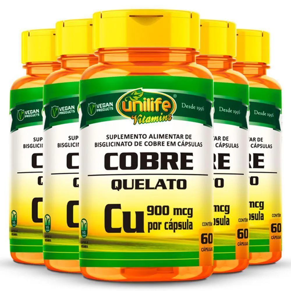 Kit 5 Cobre Quelato Unilife 60 cápsulas