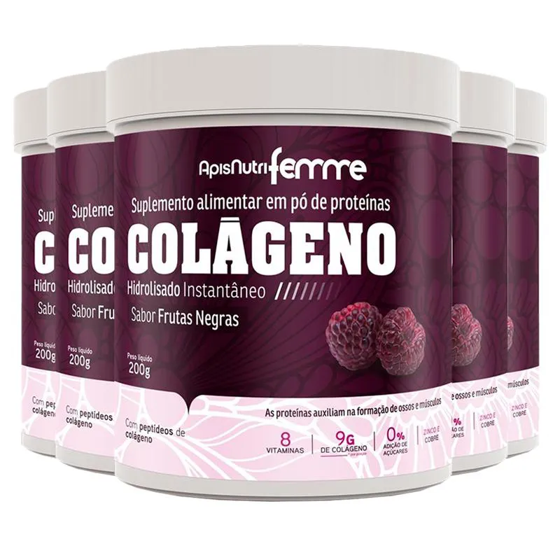 Kit 5 Colágeno Hidrolisado Beauty Complex Apisnutri 200G Frutas Roxas