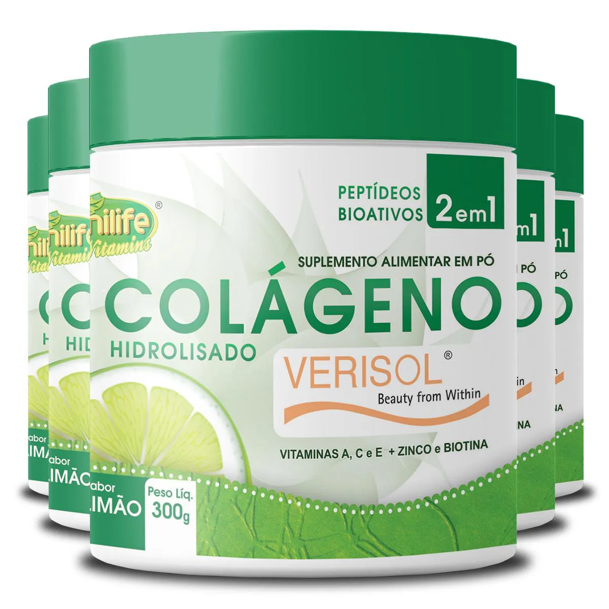 Kit 5 colágeno Hidrolisado Verisol Unilife sabor Limão 300g