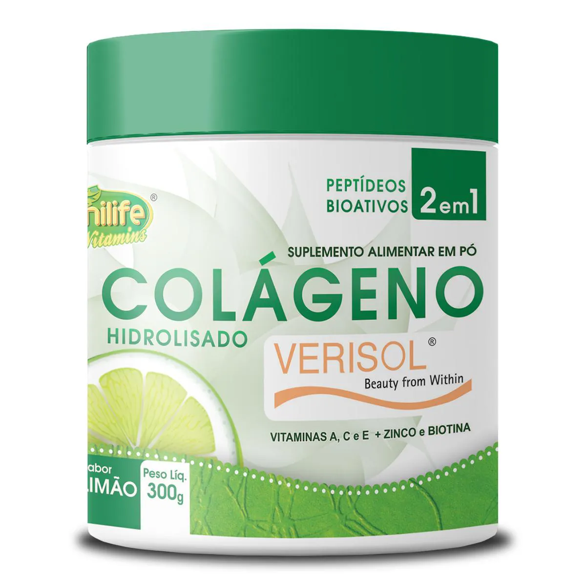 O Colágeno Hidrolisado Verisol Sabor Limão É O Suplemento Alimentar Em Pó De Peptídeos Bioativos Com Vitaminas A,C e E Mais Zinco E Biotina. Modo de usar