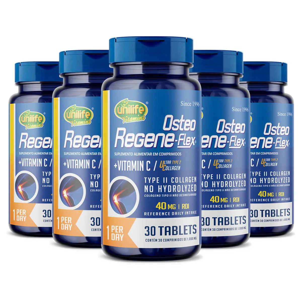 Kit 5 Colágeno Tipo 2 Ii 40Mg Regeneflex Osteo Unilife
