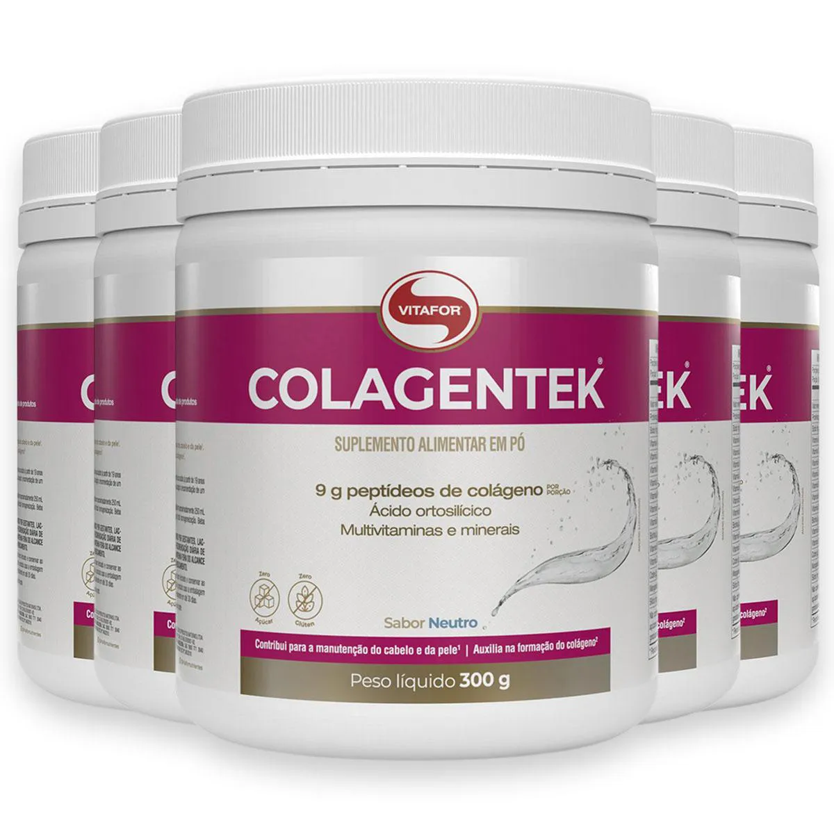 Kit 5 Colagentek Vitafor 300g Neutro COLAGENTEK é um suplemento alimentar à base de colágeno hidrolisado. Diferenciais: - Contém 9g de proteína de colágeno por porção.