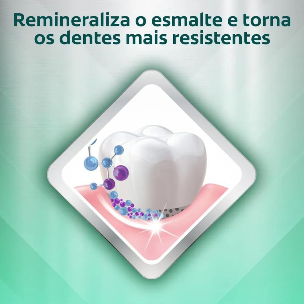 Dentes mais resistentes: remineraliza o esmalte e deixa os seus dentes mais resistentes.