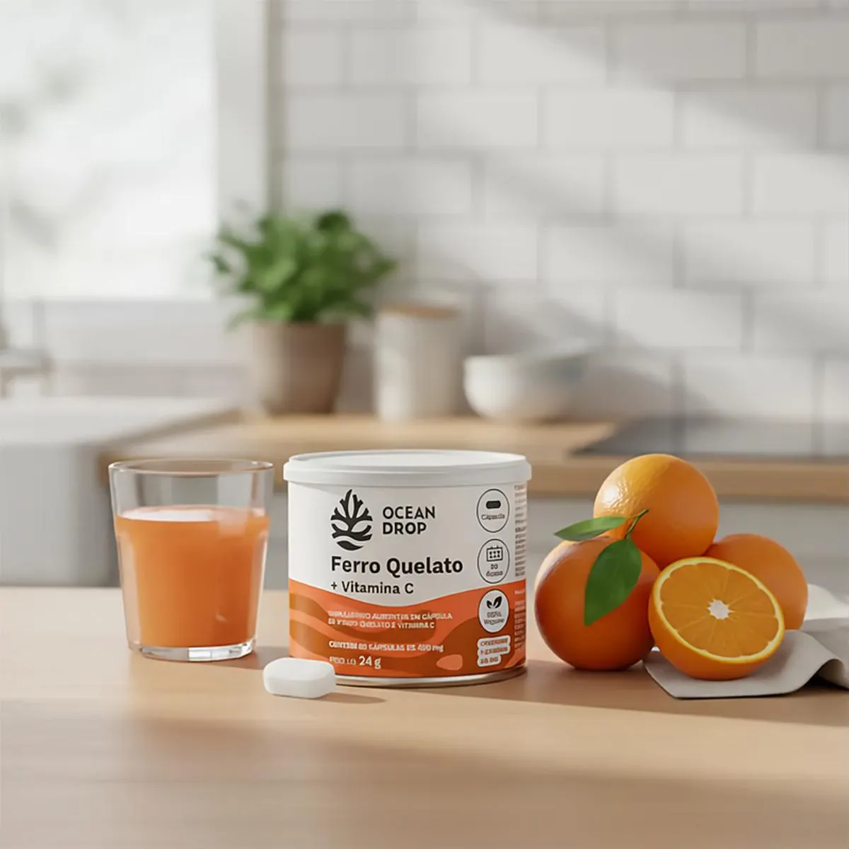 Kit 5 Ferro Quelato e Vit. C Ocean Drop 60 Cápsulas
