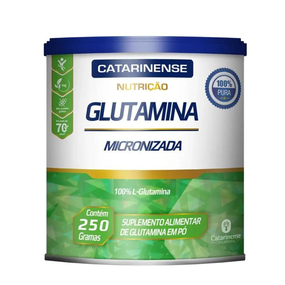 Kit 5 Glutamina Micronizada Catarinense 250g A glutamina é o aminoácido livre mais abundante no organismo. Sua concentração plasmática é de 0,5 a 0,9 mmol/L, e aproximadamente 80% da glutamina corporal encontra-se no músculo esquelético, sendo essa concentração 30 vezes superior à do plasma. A síntese de glutamina é feita a partir do ácido glutâmico, valina e isoleucina, sendo esta a reação catalisada pela enzima glutamina sintetase na presença de ATP5,6,7. sem lactose Sem açúcares