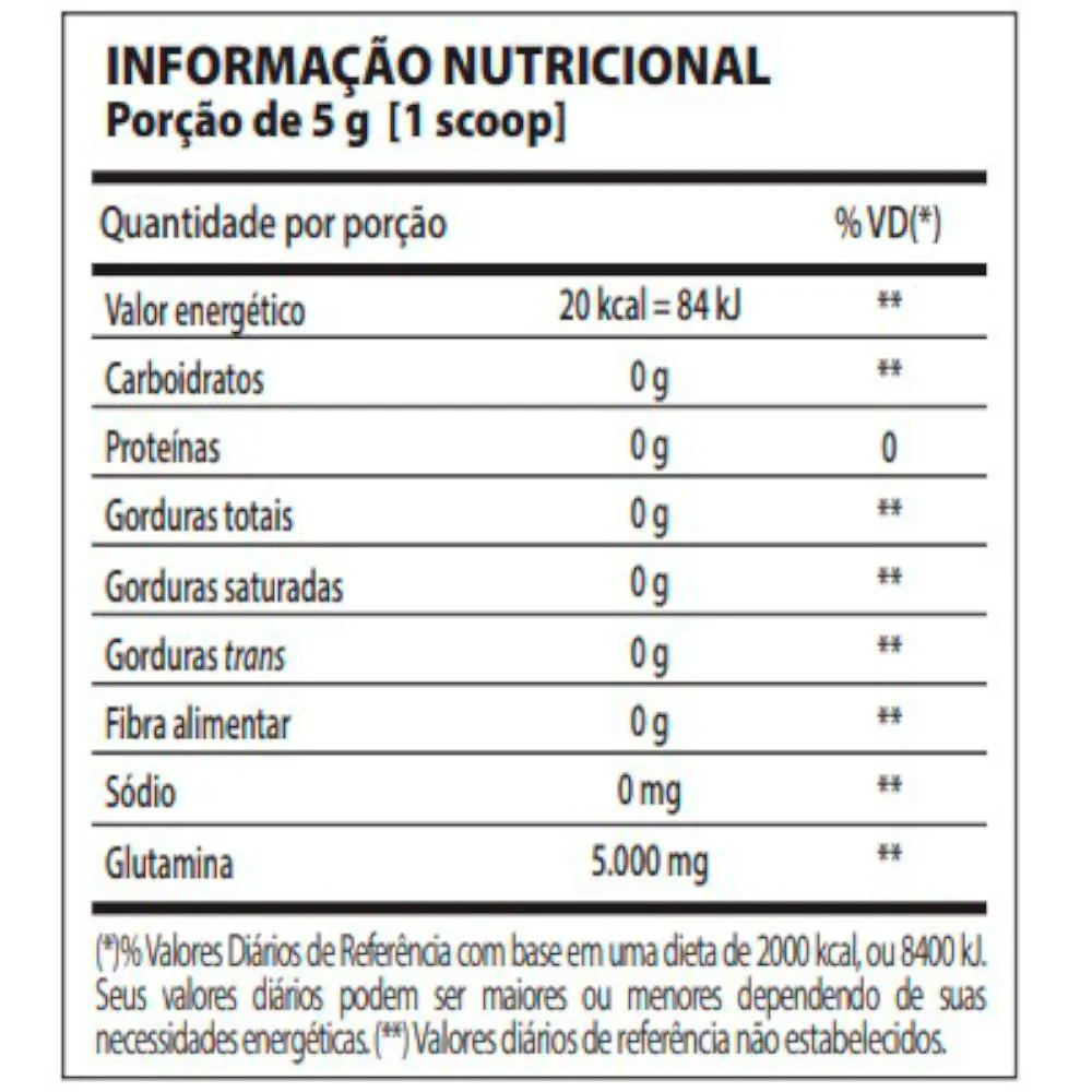 Kit 5 Glutamine L-Glutamina Isolada Neutro Nutrify 500g BENEFÍCIOS: IMUNIDADE E saúde INTESTINAL. Atividades físicas intensas, estresse e baixa imunidade são alguns dos fatores que provocam queda na síntese natural de glutamina em nosso organismo, nesses casos, a suplementação desse aminoácido pode ser recomendada. Produzido com matéria-prima Ajinomoto de extrema pureza e alta absorção, isento de glúten, lactose, corantes ou aromatizantes artificiais, GLUTAMINE Nutrify ajuda a preservar as células musculares no pós-exercício, proteger o sistema imune e favorecer a saúde intestinal, essencial para a absorção de outros nutrientes. NUTRIFY valoriza a origem de cada ingrediente, respeita a integridade de suas fontes naturais e dos envolvidos em sua produção. É assim que criamos produtos saudáveis e saborosos, que fazem bem para as pessoas e para o planeta. Acreditamos que nutrir corpo e mente de modo saudável nos torna capazes de alimentar o mundo com atitudes positivas. INGREDIENTES: L-Glutamina. NÃO CONTÉM GLÚTEN. Este produto não é um medicamento. Não exceder a recomendação diária de consumo indicada na embalagem. Mantenha fora do alcance de crianças. Este produto não deve ser consumido por gestantes, lactantes e crianças. Este produto é recomendado para adultos acima de 18 anos. APRESENTAÇÃO: Embalagem disponível: lata contendo suplemento em pó. Sabor neutro. Peso Líquido: 500 g Produto classificado como: SUPLEMENTO ALIMENTAR DE GLUTAMINA EM PÓ.