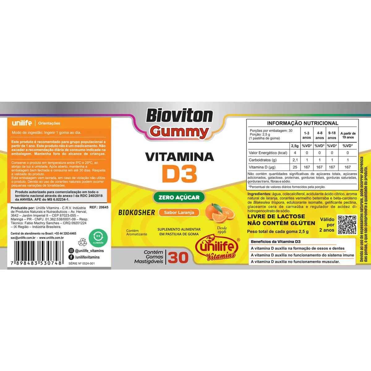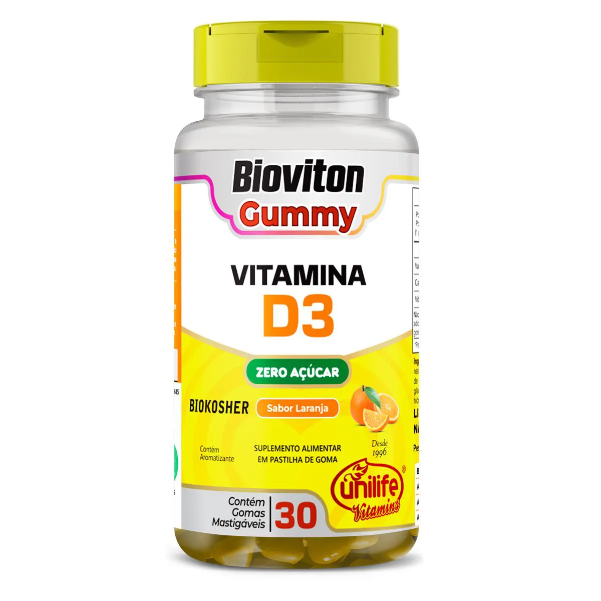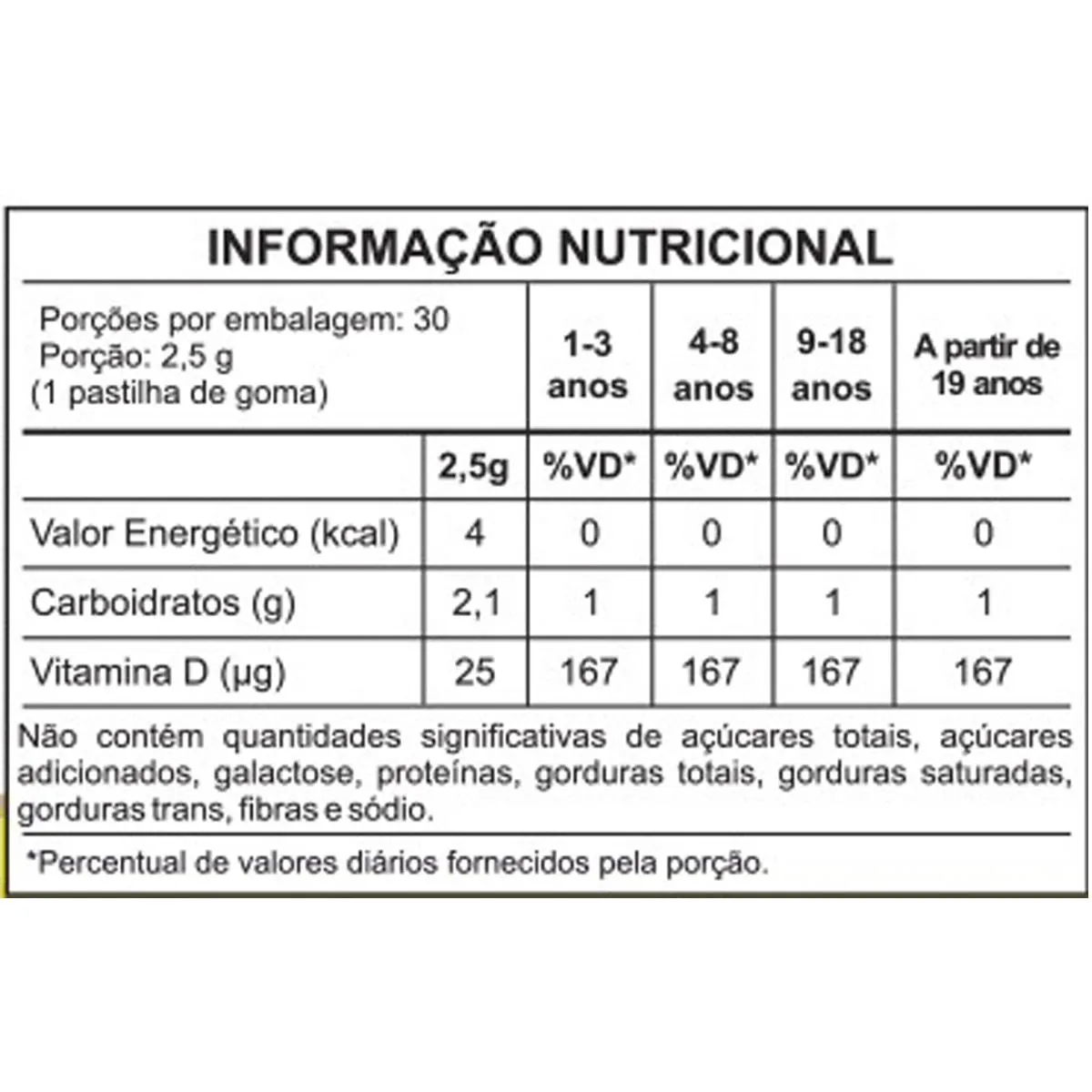 Kit 5 Gummy Vitamina D3 Laranja 30 gomasGUMMIES - São suplementos em forma de pastilhas de goma, livres de glúten e zero açúcar, com nutrientes diversos que atendem a várias funções no organismo. A goma utilizada é a pectina gelificante e glaceante cera de carnaúba. Os aromas e corantes são naturais e edulcorante isomalte.