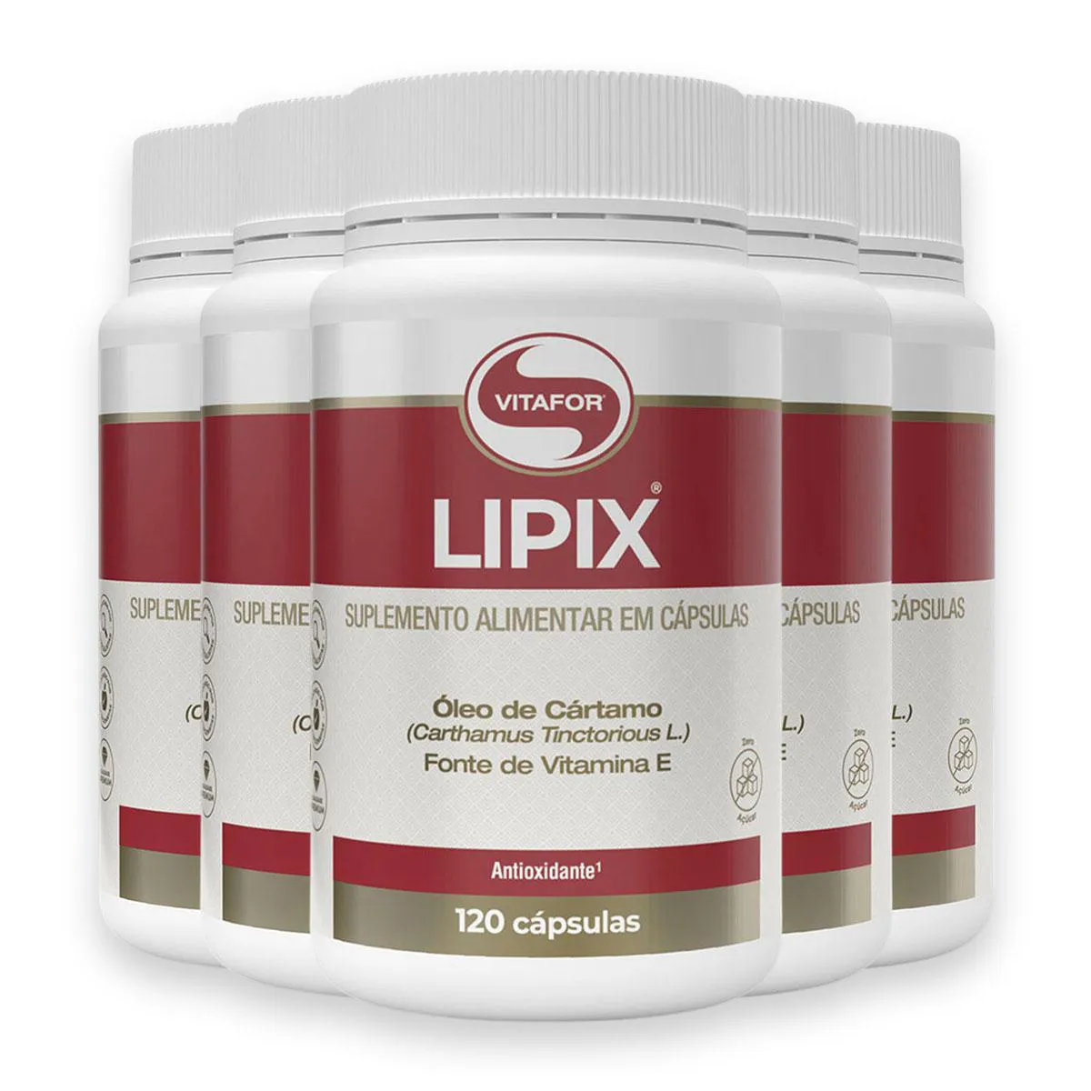 Kit 5 Lipix Vitafor Óleo de Cártamo 120 Cápsulas LIPIX é um produto à base de Óleo de Cártamo (Carthamus tinctorius), uma planta de origem asiática que possui em sua composição os ácidos graxos essenciais: ácido linoléico (ômega 6), ácido oleico (ômega 9) e vitamina e. Diferenciais: - Praticidade no formato cápsulas.