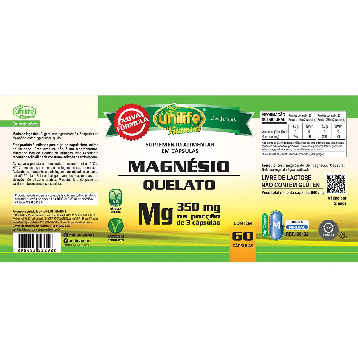 Kit 5 Magnésio Quelato Unilife 60 Cápsulas