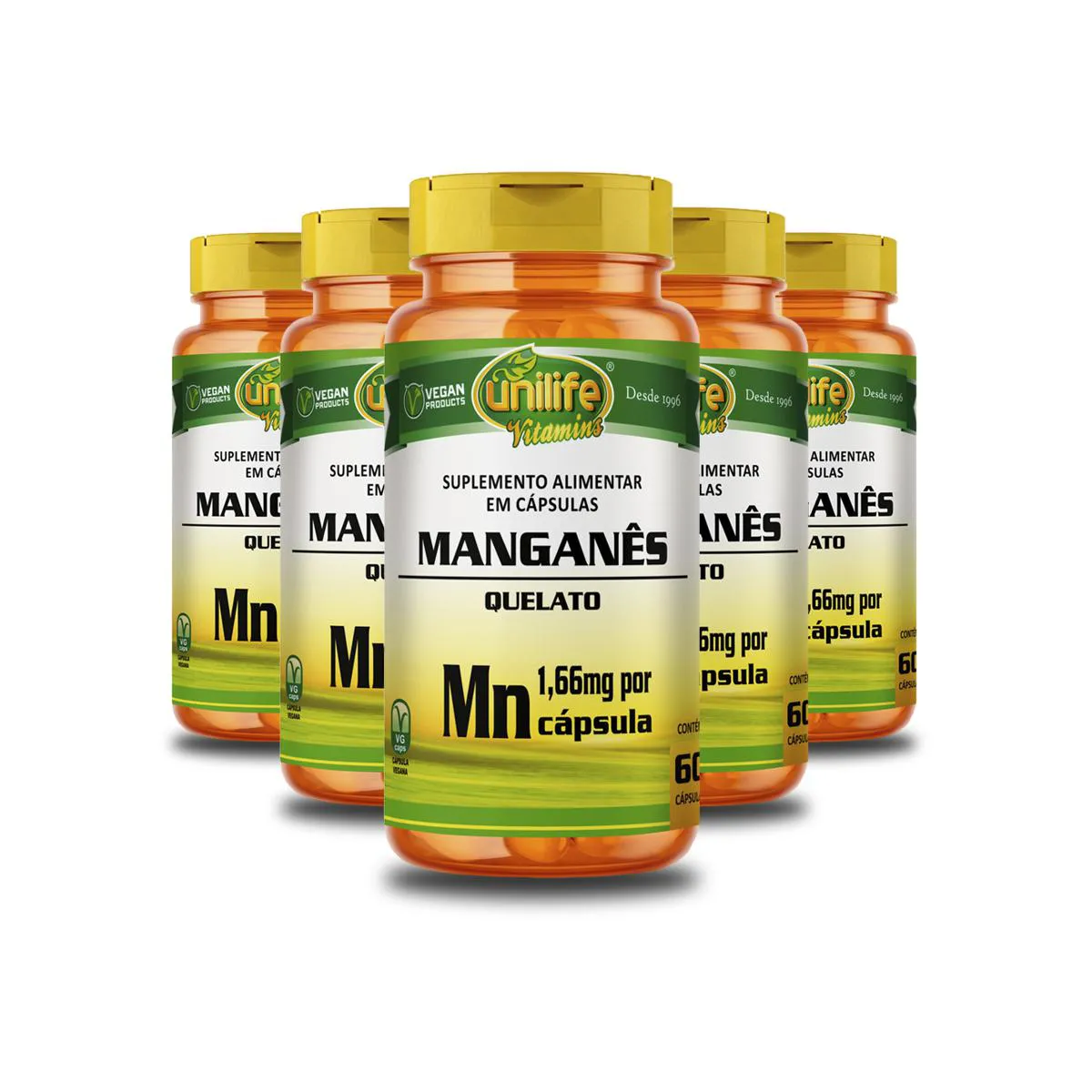 Kit 5 Manganês Quelato Mn 60 Cápsulas Unilife