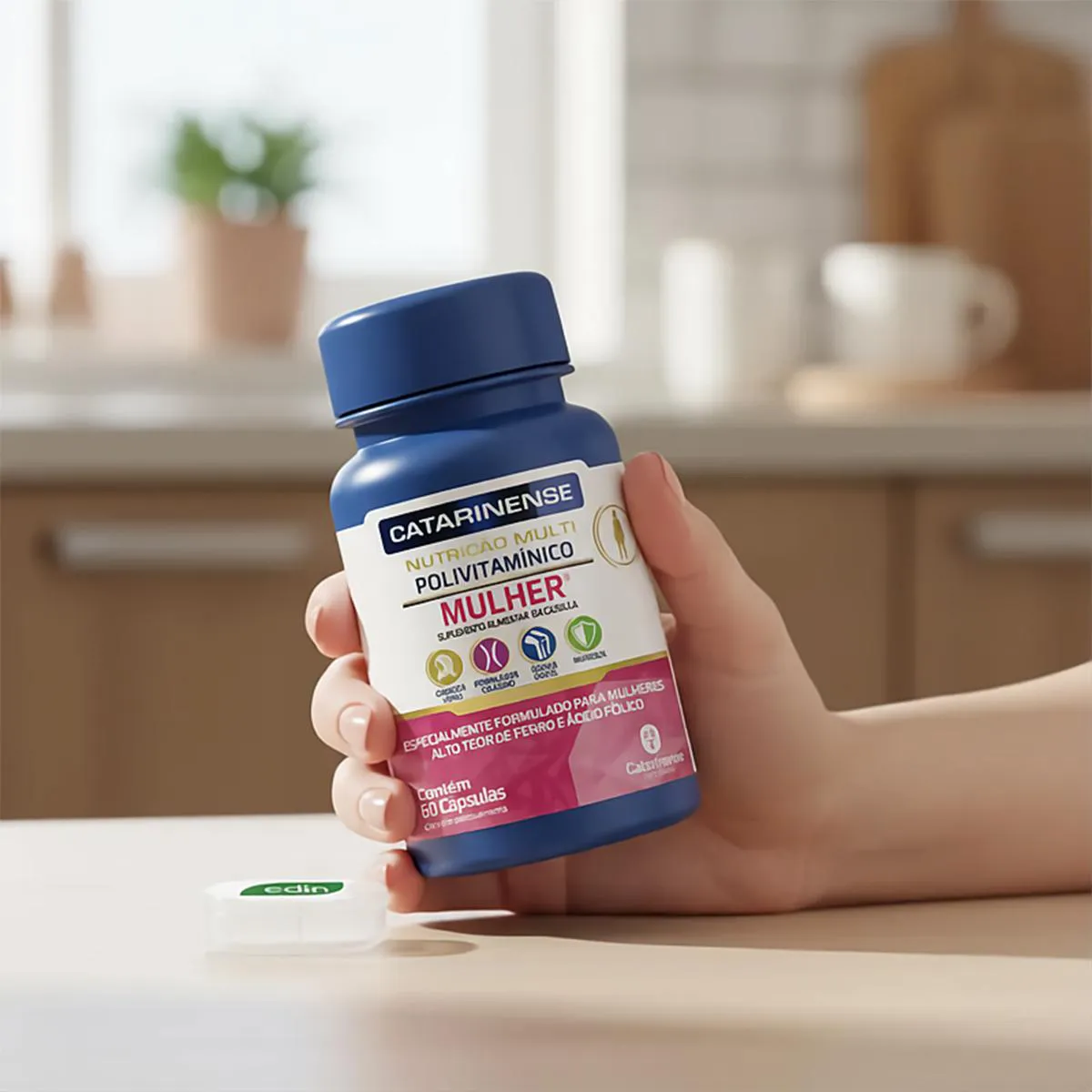 Kit 5 Multipolivitamínico Mulher Catarinense 60 Cápsulas + Porta Cápsulas Características do produto: