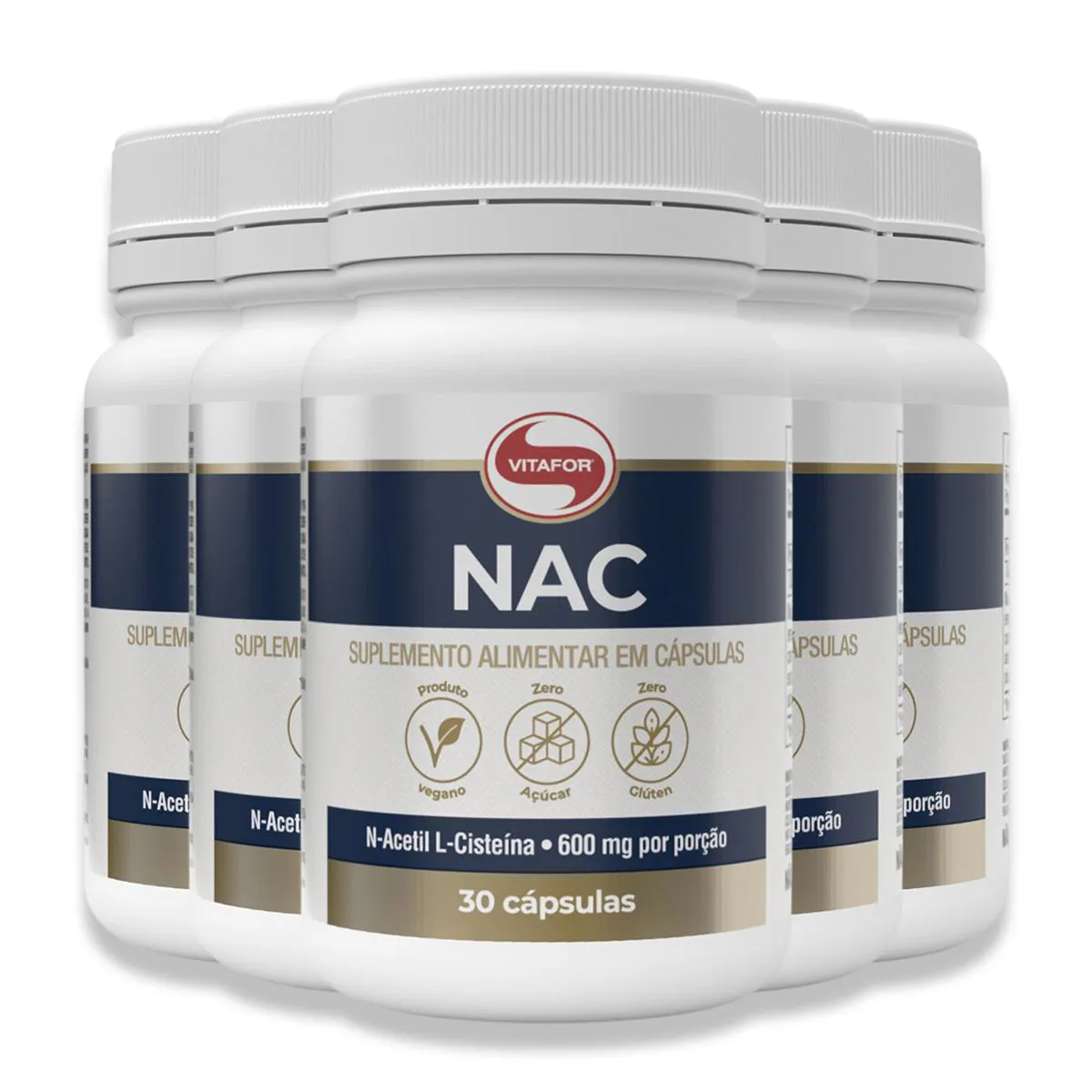 Kit 5 Nac N-Acetil L-Cisteína 600Mg Vitafor 30 Cápsulas