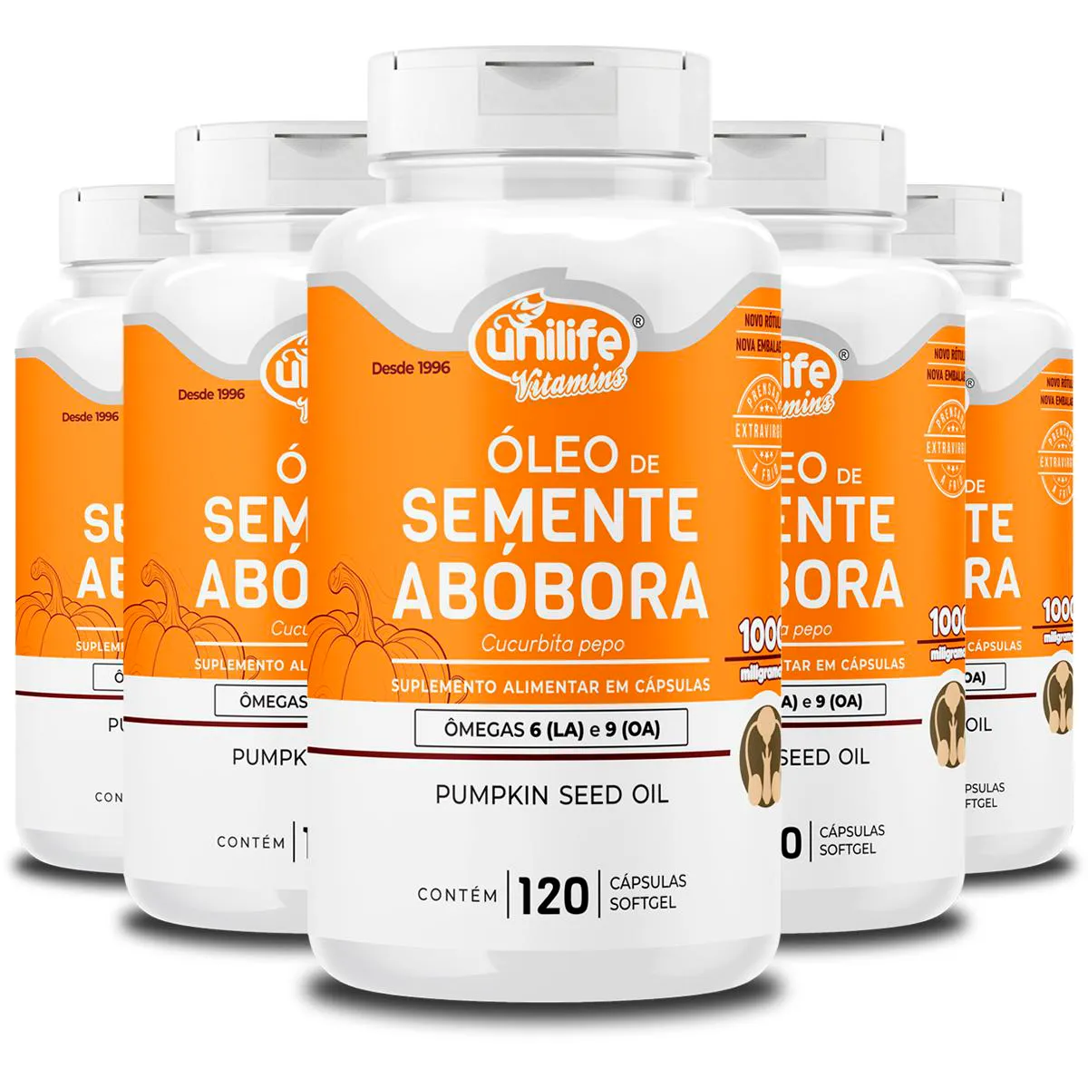 Kit 5 Óleo de Semente de Abóbora Unilife 120 cápsulas