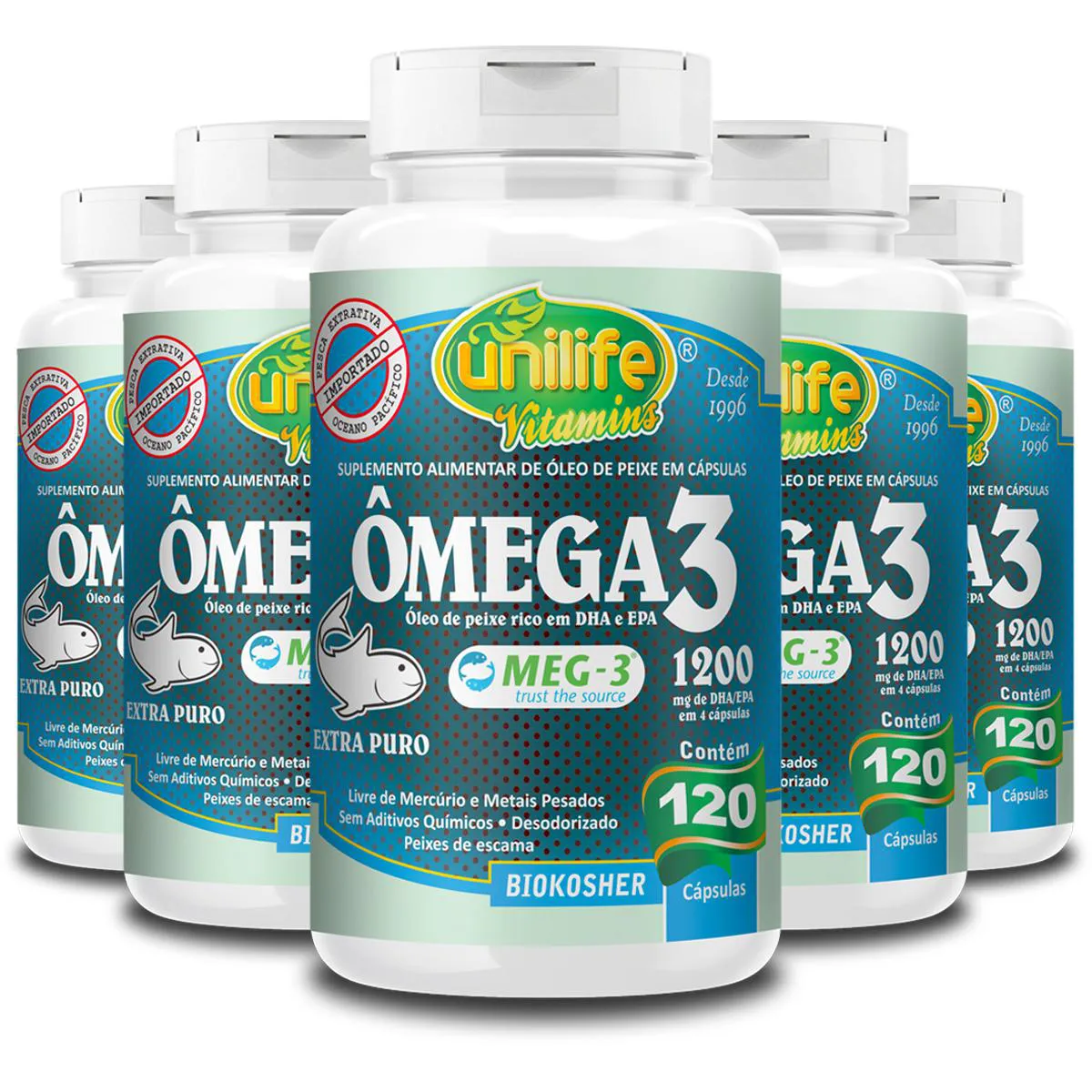 Kit 5 Ômega 3 Double Unilife – 1200 mg (60 cápsulas) Descrição: