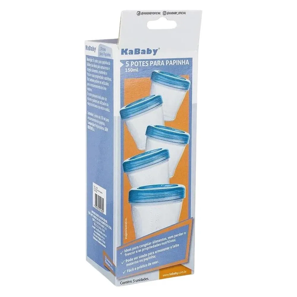 Kit 5 Potes para Papinhas e Leite Materno Azul 150Ml Kababy