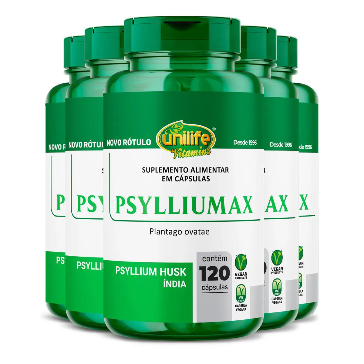 Kit 5 Psyllium Unilife Psylliumax 120 Cáspulas