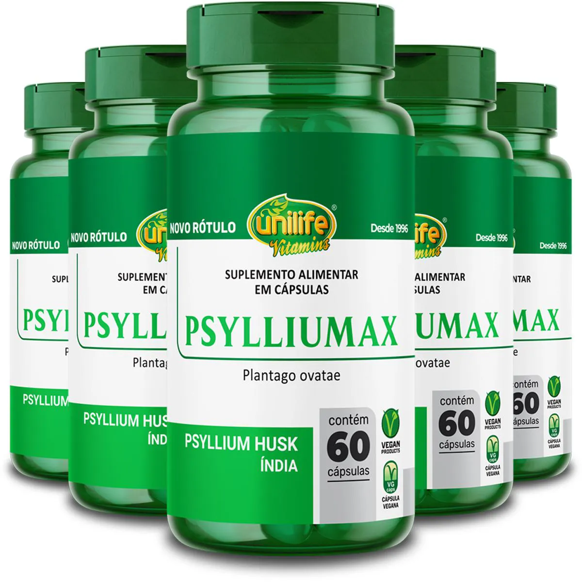 KIT 5 PSYLLIUM UNILIFE PSYLLIUMAX 60 CÁPSULAS Psylliumax (Plantago Ovata) Unilife 60 cápsulas