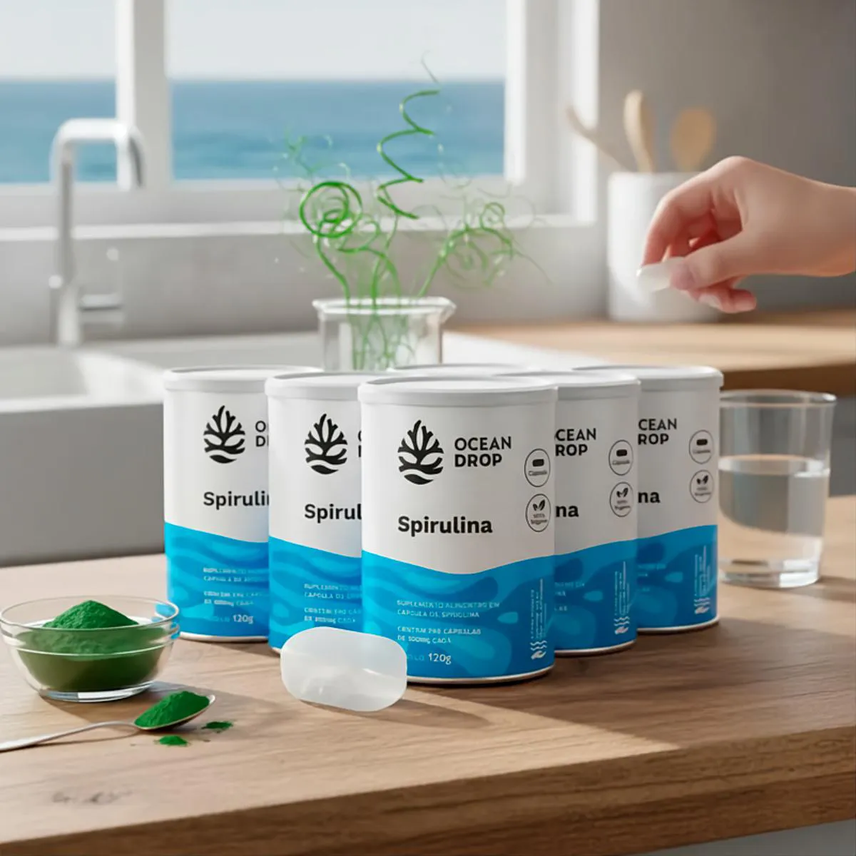 Kit 5 Spirulina Ocean Drop Vegana 240 Cápsulas + porta cápsulas