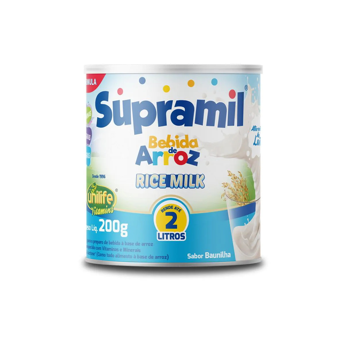 A Supramil Bebida de Arroz Kids Unilife nada mais é do que uma bebida derivada do arroz com um gosto e densidade muito semelhante ao leite, sendo uma ótima opção para a dieta de pessoa intolerantes a lactose, na verdade uma ótima opção para todas as pessoas, pois os benefícios deles são enormes em todas dietas, proporcionando melhor saúde e até mesmo emagrecimento.Para que serve a Supramil Bebida de arroz Kids Unilife 200g?