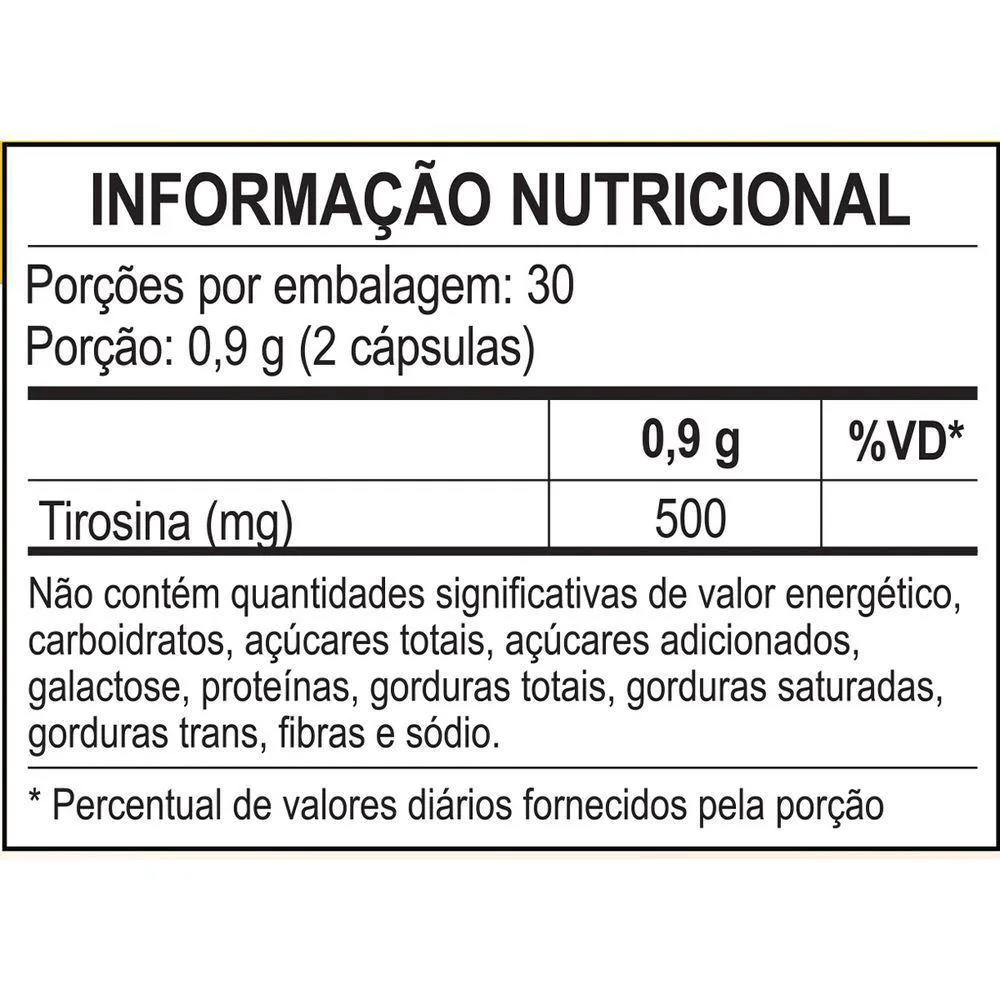 - Suplemento de L-Tirosina em cápsulas vegetais.
