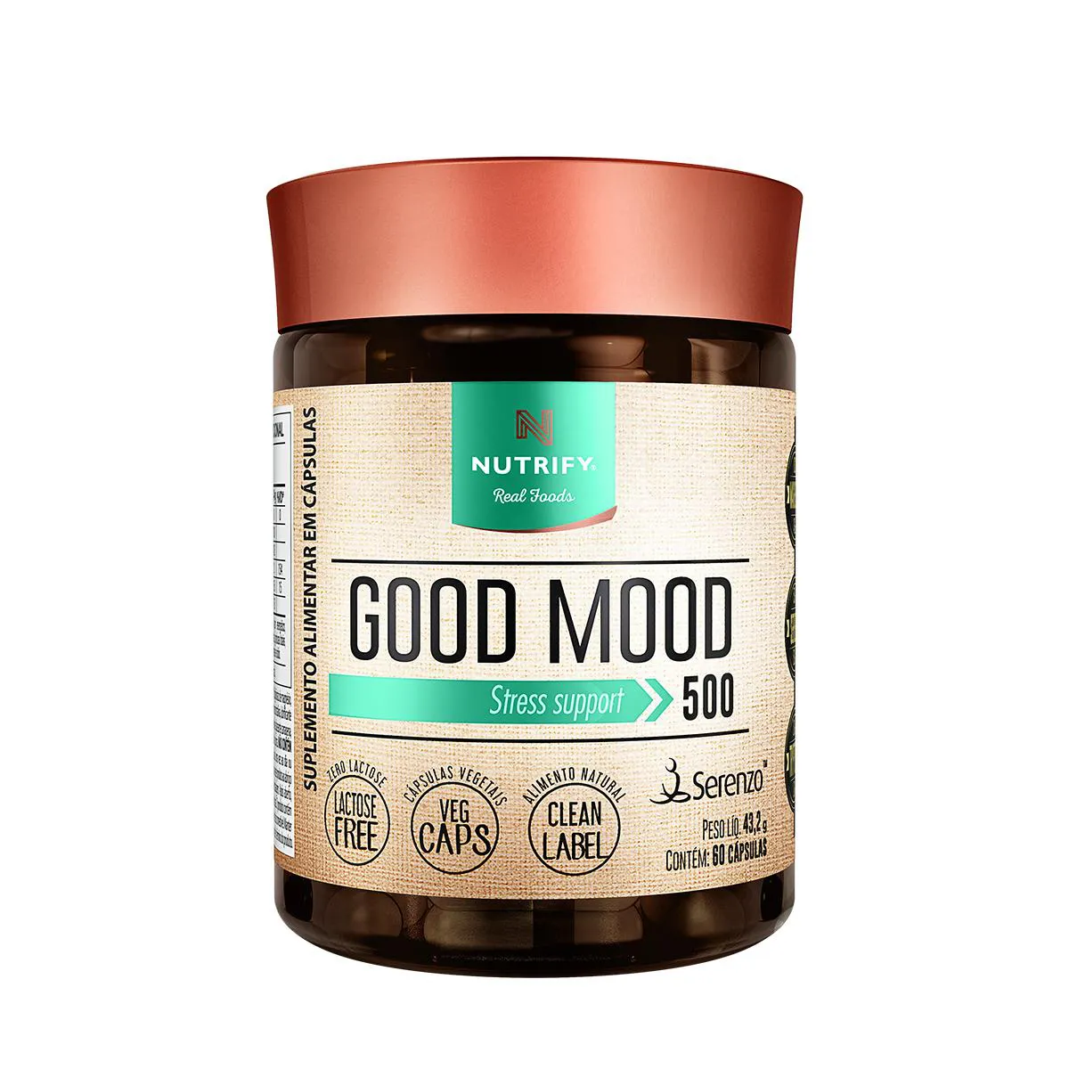 O GOOD MOOD é a junção de ativos pesquisados a fim de compor uma formulação única e eficiente. Cada porção fornece 500 mg de SerenzoTM, contendo 23% de d-limoneno, além de L-triptofano, bisglicinato de magnésio e fosfato de piridoxal (Vitamina B6). APRESENTAÇÃO:Embalagem disponível: pote contendo suplemento em cápsulas. Contém 60 cápsulas. Produto classificado como: SUPLEMENTO ALIMENTAR EM CÁPSULAS. INGREDIENTES: Óleo de casca de laranja doce (SerenzoTM), bisglicinato de magnésio, L-triptofano, fosfato de piridoxal, agente de massa celulose microcristalina, lubrificante estearato de magnésio, estabilizante hidroxipropilmetilcelulose, glaceante carragena, regulador de acidez acetato de potássio e corante clorofila cúprica. NÃO CONTÉM GLÚTEN. ESTE PRODUTO NÃO É UM MEDICAMENTO. NÃO EXCEDER A RECOMENDAÇÃO DIÁRIA DE CONSUMO INDICADA NA EMBALAGEM. MANTENHA FORA DO ALCANCE DE CRIANÇAS. ESTE PRODUTO NÃO DEVE SER CONSUMIDO POR GESTANTES, LACTANTES E CRIANÇAS. ESTE PRODUTO É RECOMENDADO PARA ADULTOS A PARTIR DE 19 ANOS. Registro: Isento de registro conforme RDC 243/2018.