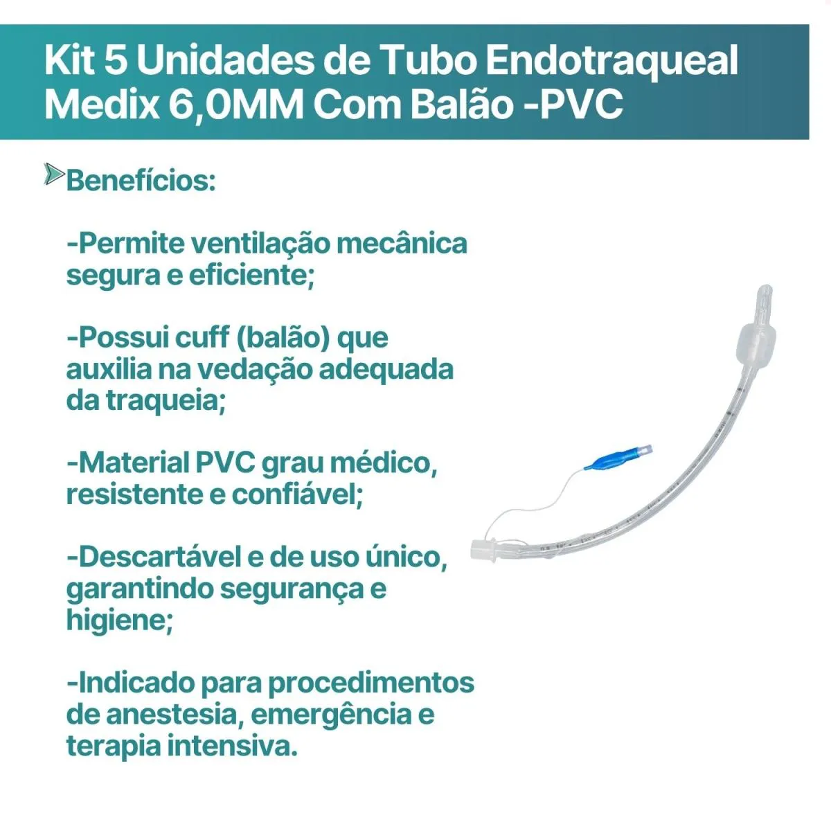Kit 5 Unidade de Tubo Endotraqueal Medix 6,0Mm com Balão Pvc - Envio Imediato