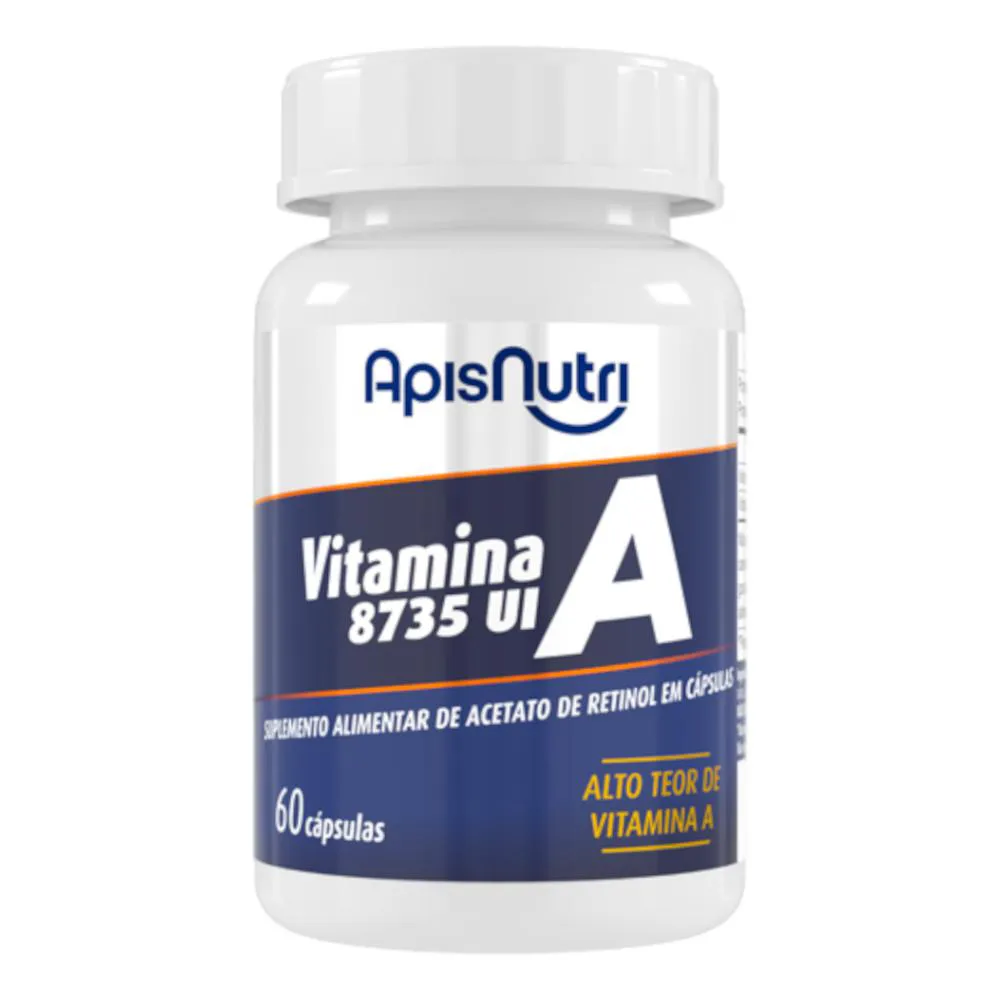 O Kit 5 Vitamina A Apisnutri é um suplemento alimentar composto por cápsulas de acetato de retinol, que contém vitamina A encontrada em alimentos de origem animal e vegetal. É fundamental para a manutenção da vida, atuando em diversas funções do organismo, como saúde da visão, pele, sistema imune, metabolismo do ferro e manutenção das mucosas, além de contribuir para o processo de diferenciação celular.
