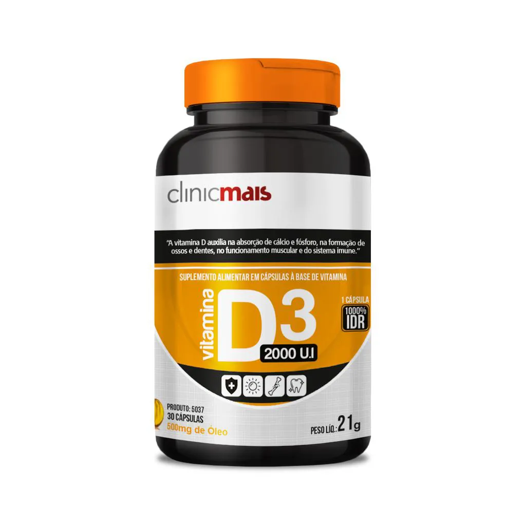 Kit 5 Vitamina D3 2000 U.i 500Mg Clinicmais 30 Cápsulas