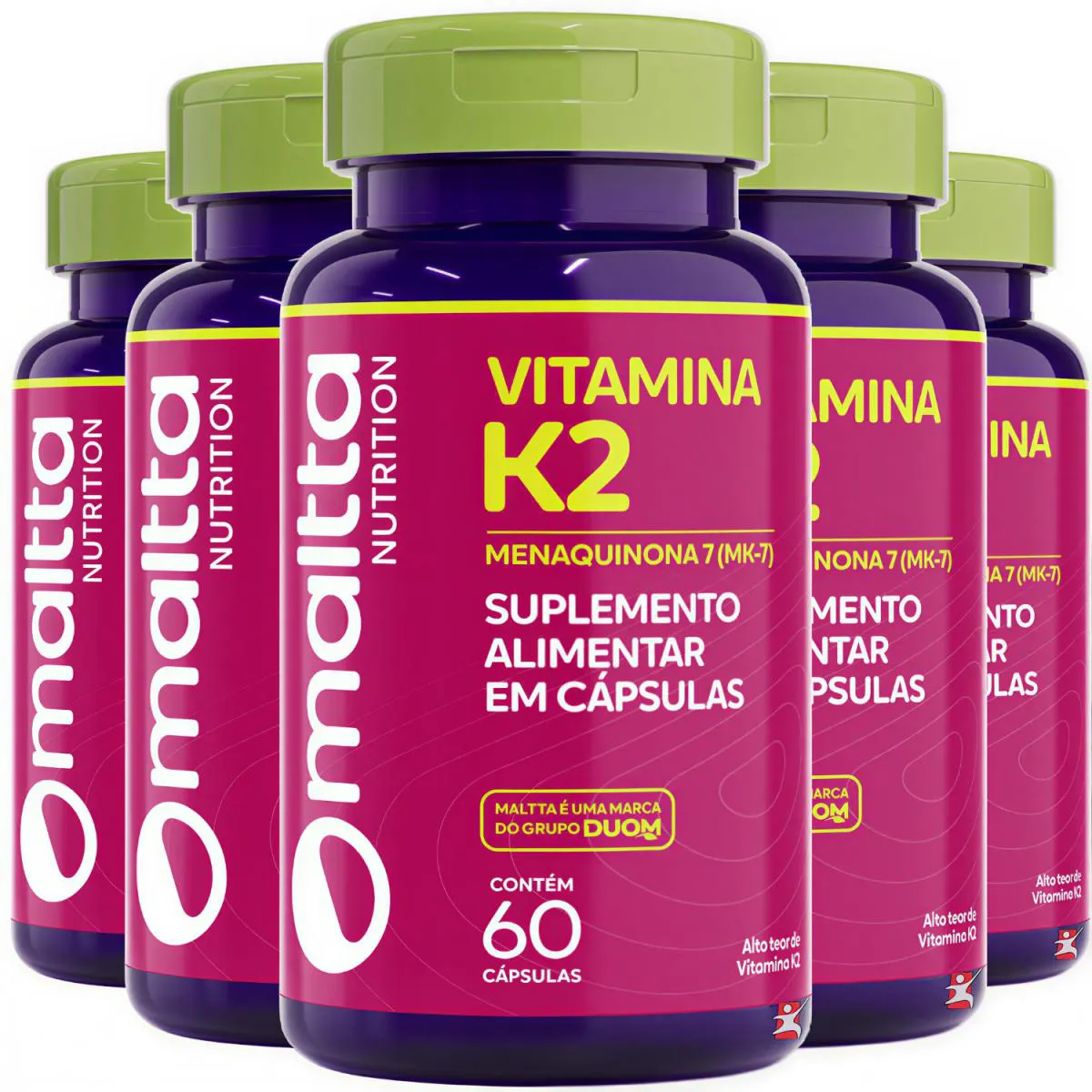 Kit 5 Vitamina K2 Menaquinona Mk-7 Total 300 Cápsulas Concentrada - Maltta Nutrition