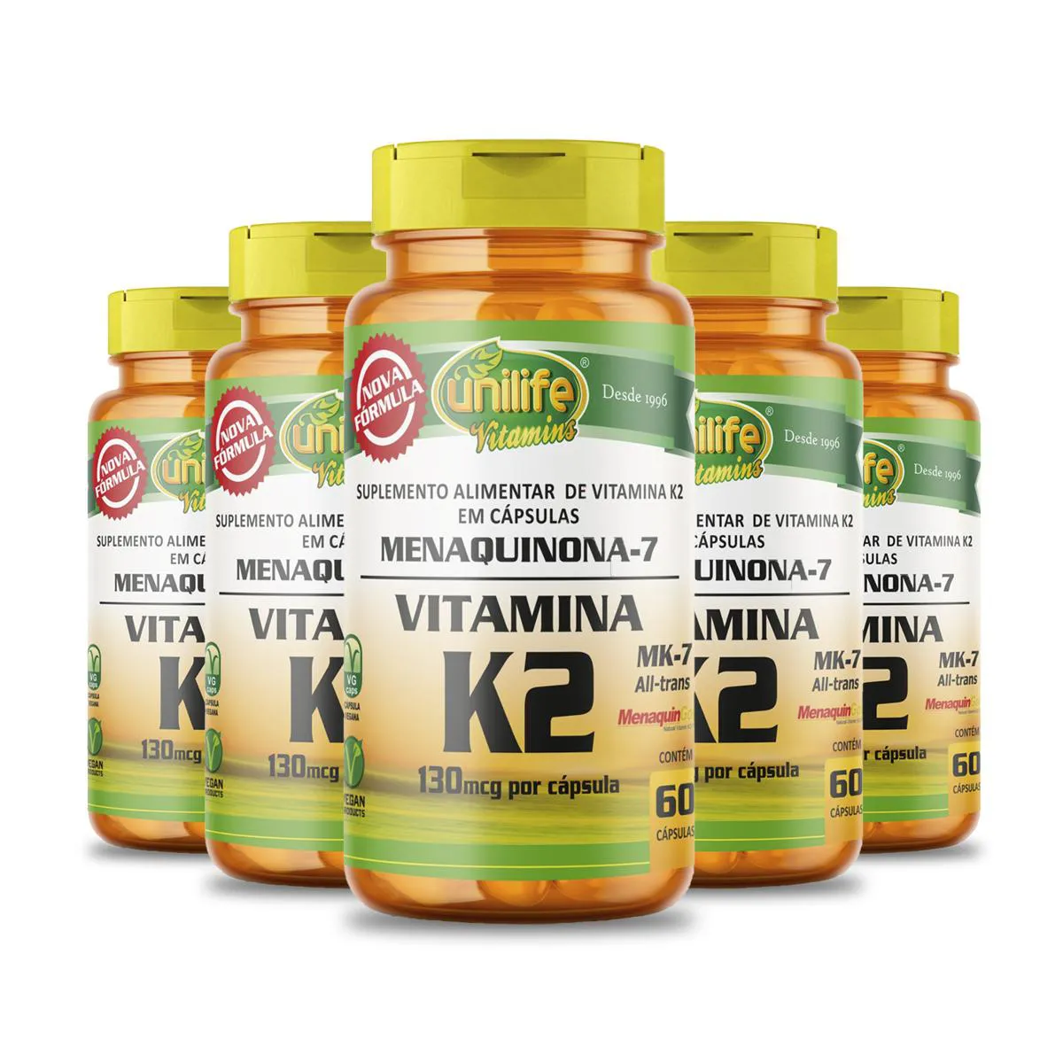 Kit 5 Vitamina K2 Menaquinona Mk7 60 Cápsulas Unilife