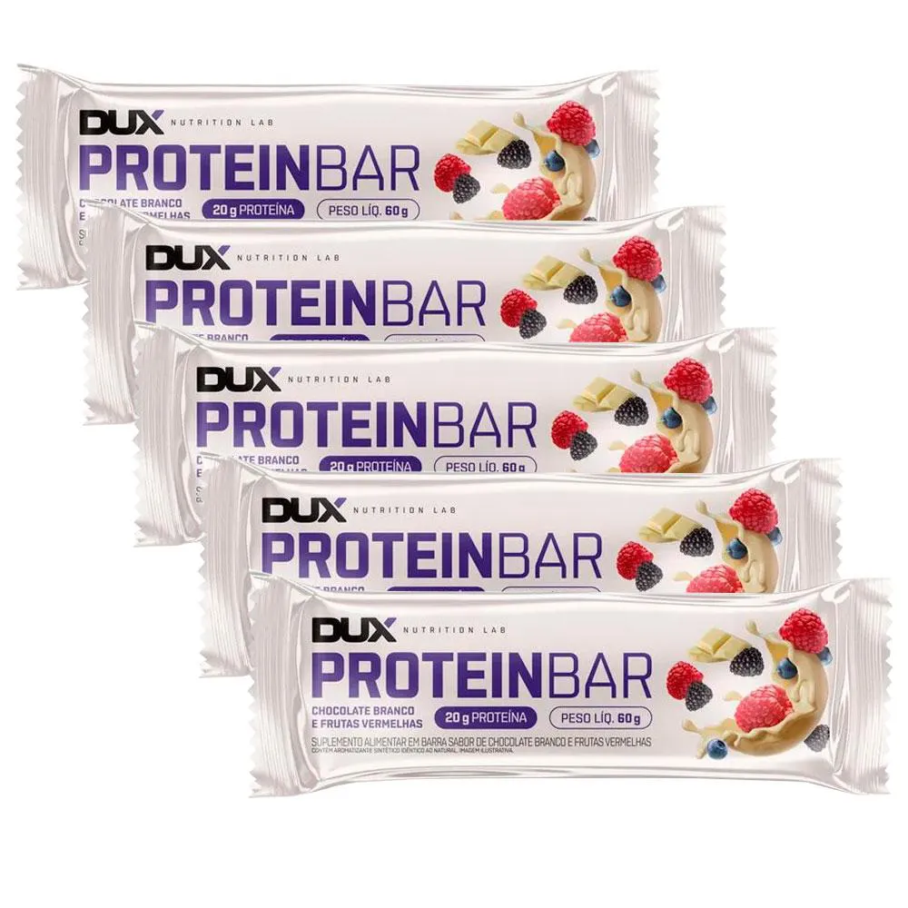 Kit 5un Protein Bar - Barra de Proteína - 60g cada - DUX Nutrition Chocolate Branco E Frutas Vermelhas