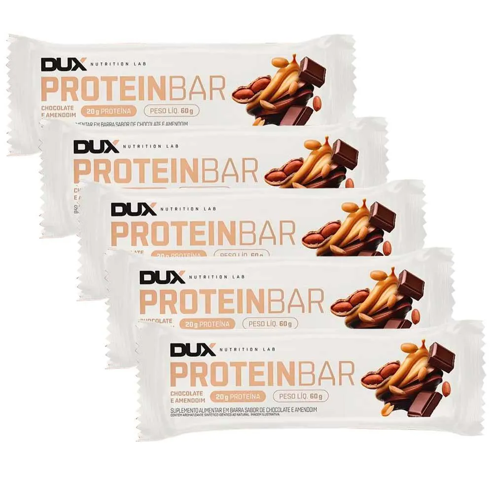 Kit 5un Protein Bar - Barra de Proteína - 60g cada - DUX Nutrition Chocolate E Amendoim