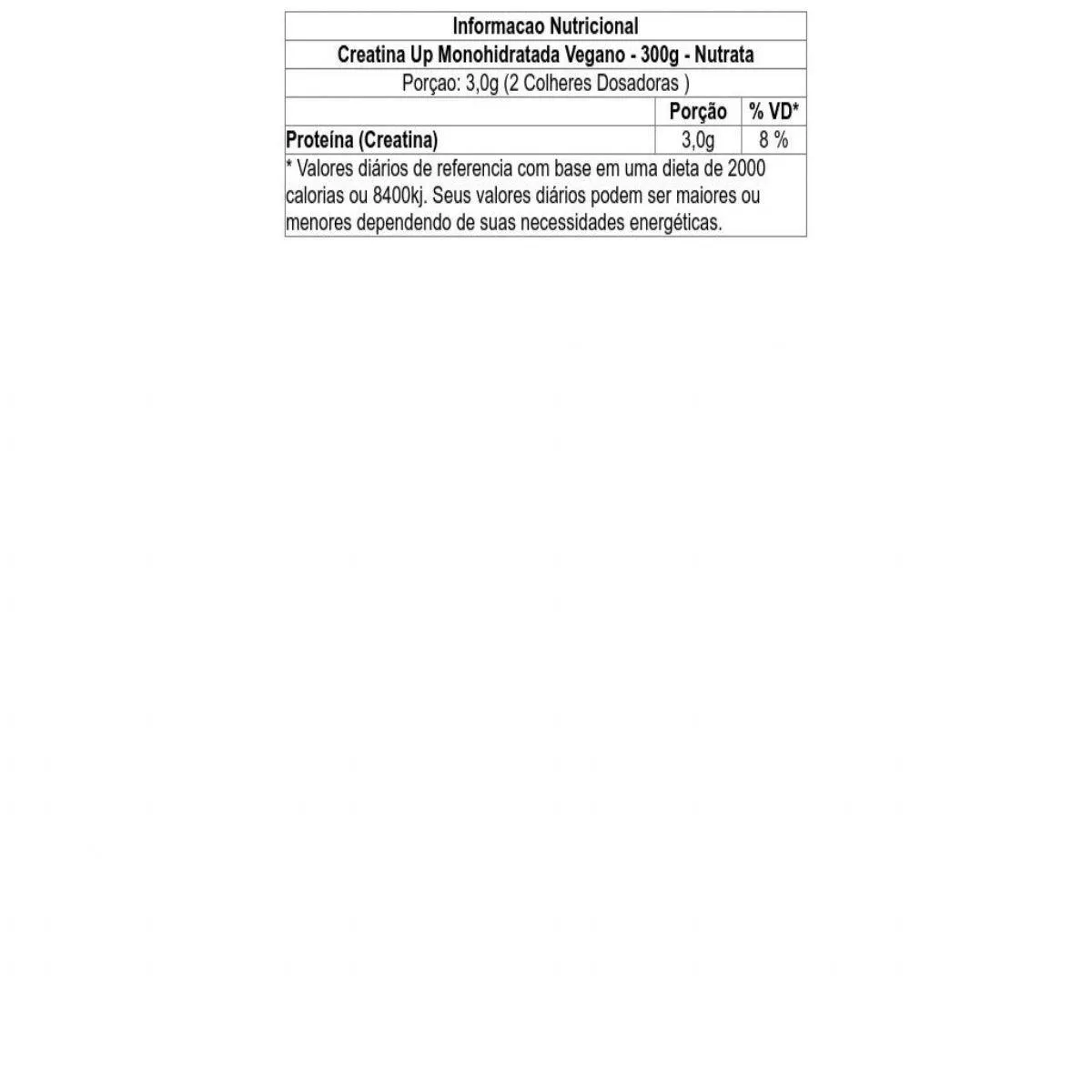 Ingredientes - Creatina Up Monohidratada Vegano - 300g Natural - Nutrata