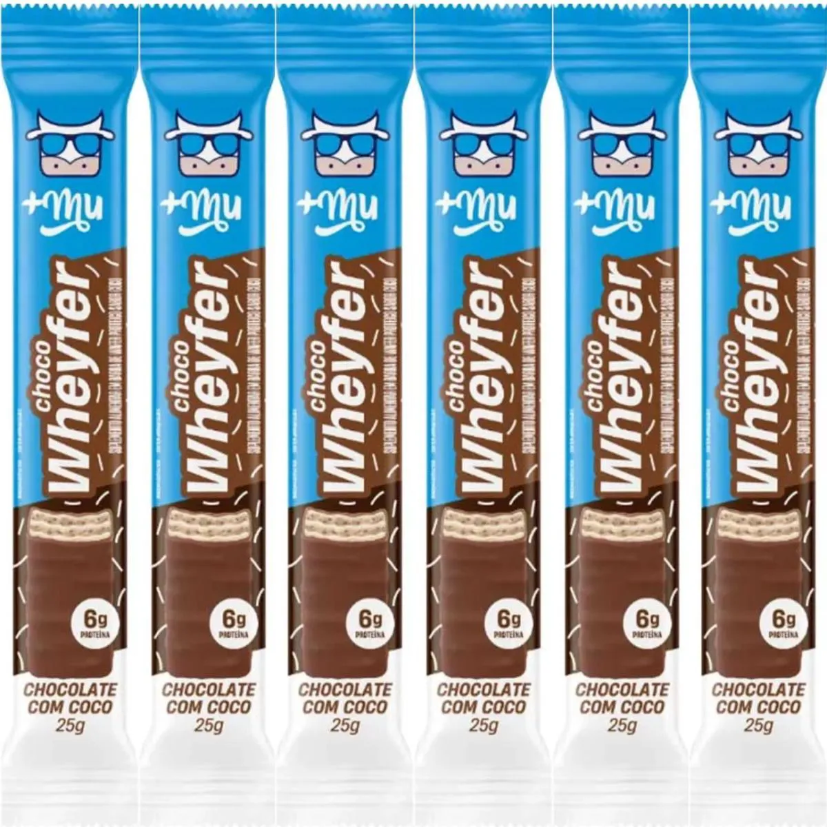 O Choco Wheyfer Proteico +MU é um snack proteico em formato de wafer, com cobertura de chocolate e recheio cremoso sabor baunilha, desenvolvido para oferecer nutrição equilibrada de forma prática e saborosa. Serve para auxiliar na manutenção e recuperação muscular, funcionando como um lanche funcional que pode ser consumido antes ou após treinos, entre refeições ou quando se deseja um doce mais saudável, fornecendo 6g de proteína por unidade com baixo teor de açúcar e gordura.