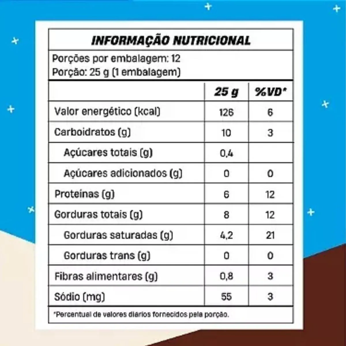 - Fornece 6g de proteína por unidade, auxiliando na manutenção e recuperação muscular.