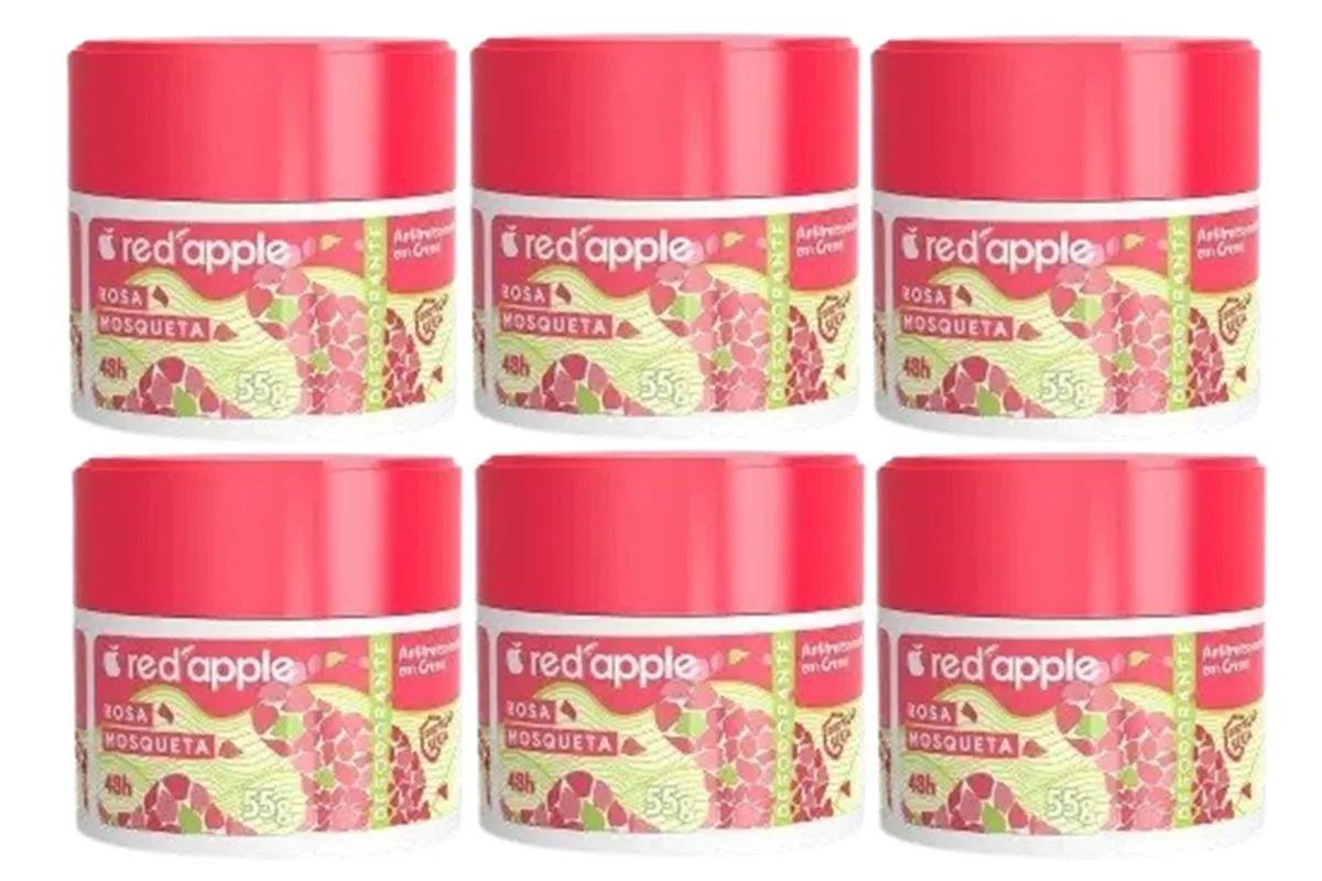 Kit 6 Desodorante Red Apple Em Creme Rosa Mosqueta 55g